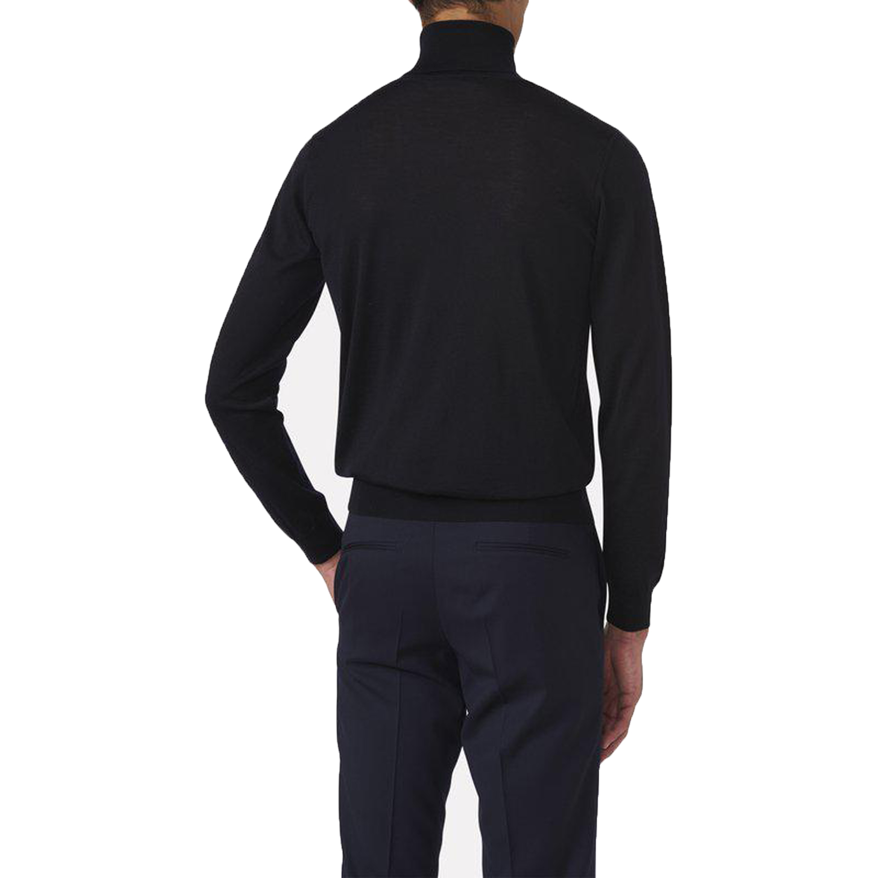 Blød rullekrave strik i mørk blå fra Oscar Jacobson. Brug den gerne under en jakke.