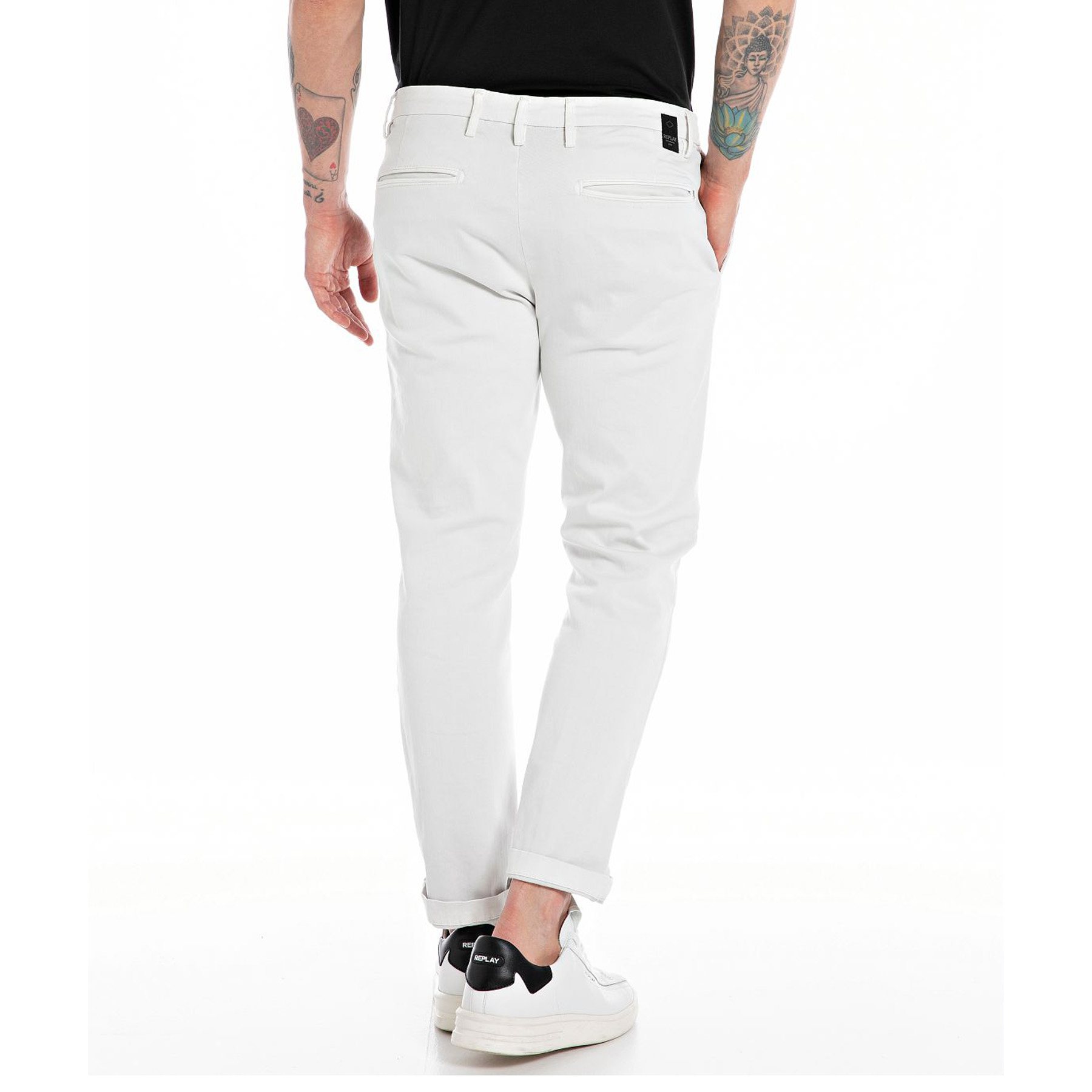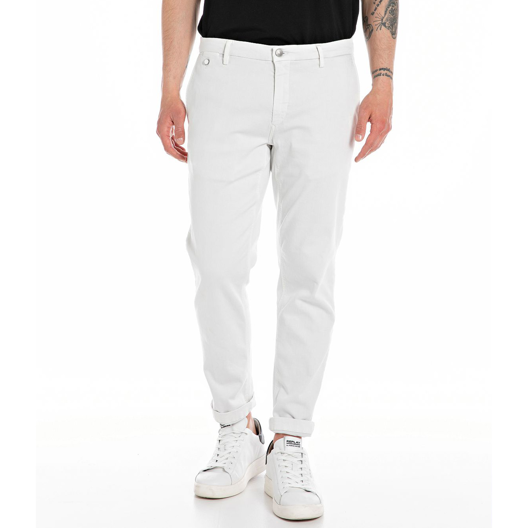 Disse chinos er med Replays populære hyperflex stretch. Det er altså en helt fantastisk stretch, som sikrer at stoffet er super fleksibelt og at det altid trækker sig tilbage igen, og ikke efterlade knæ eller andet i dine chinos. Så de holder altså pasformen.