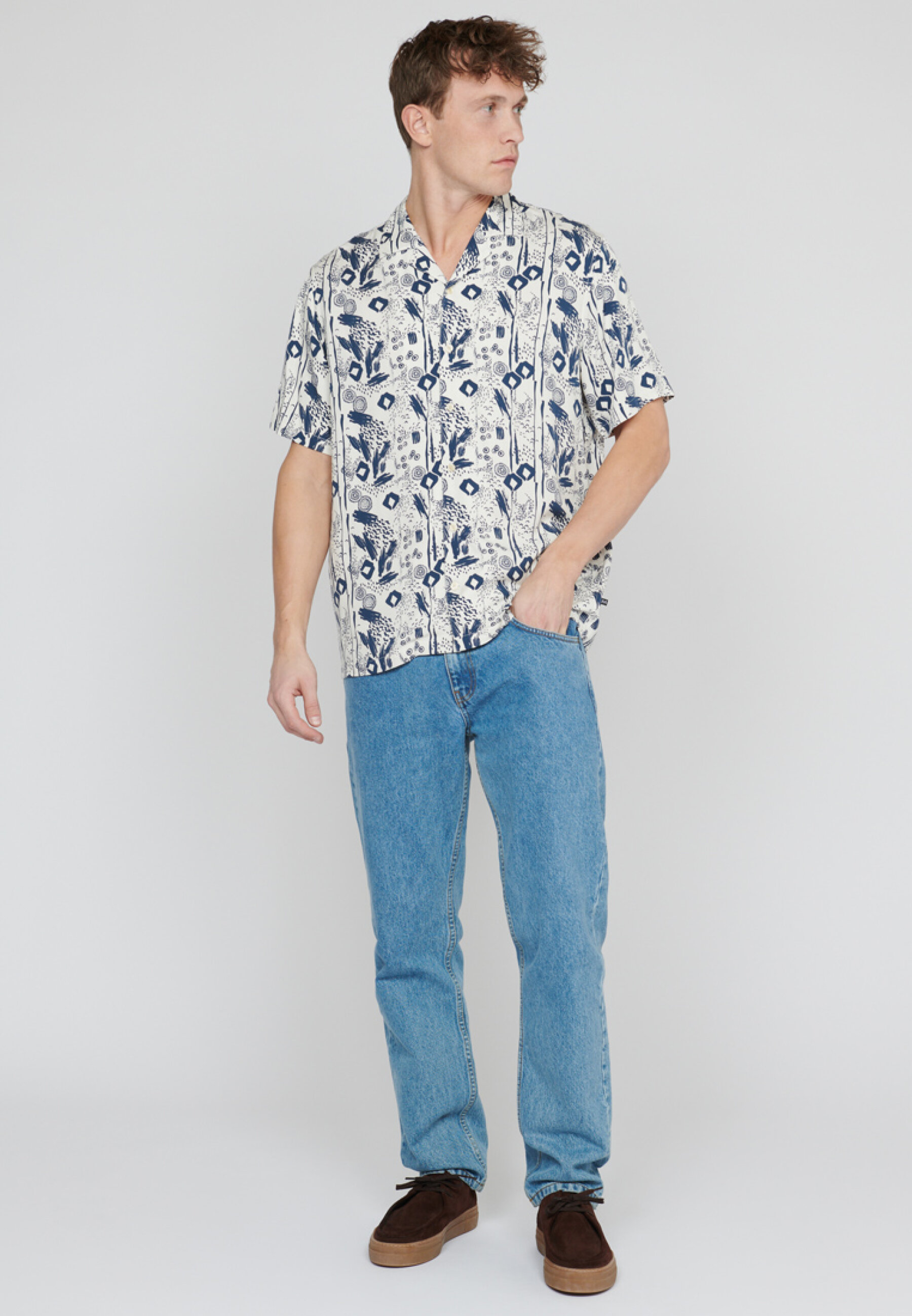 Flot blåmønstret kortærmet skjorte i den blødeste viskose kvalitet.