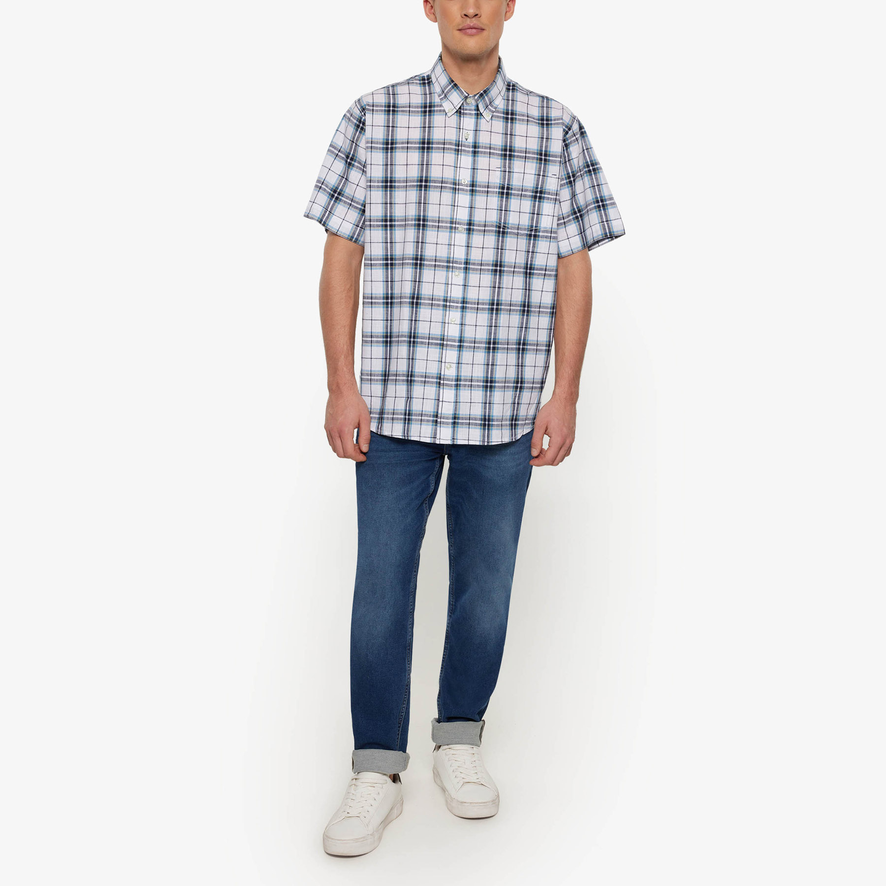 Hvid & blå ternet skjorte med korte ærmer fra Signal.