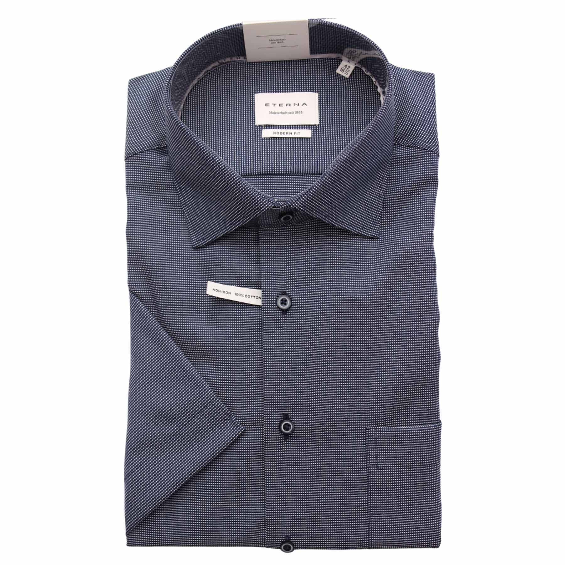 Småternet navy skjorte fra Eterna med brystlomme i modern fit.