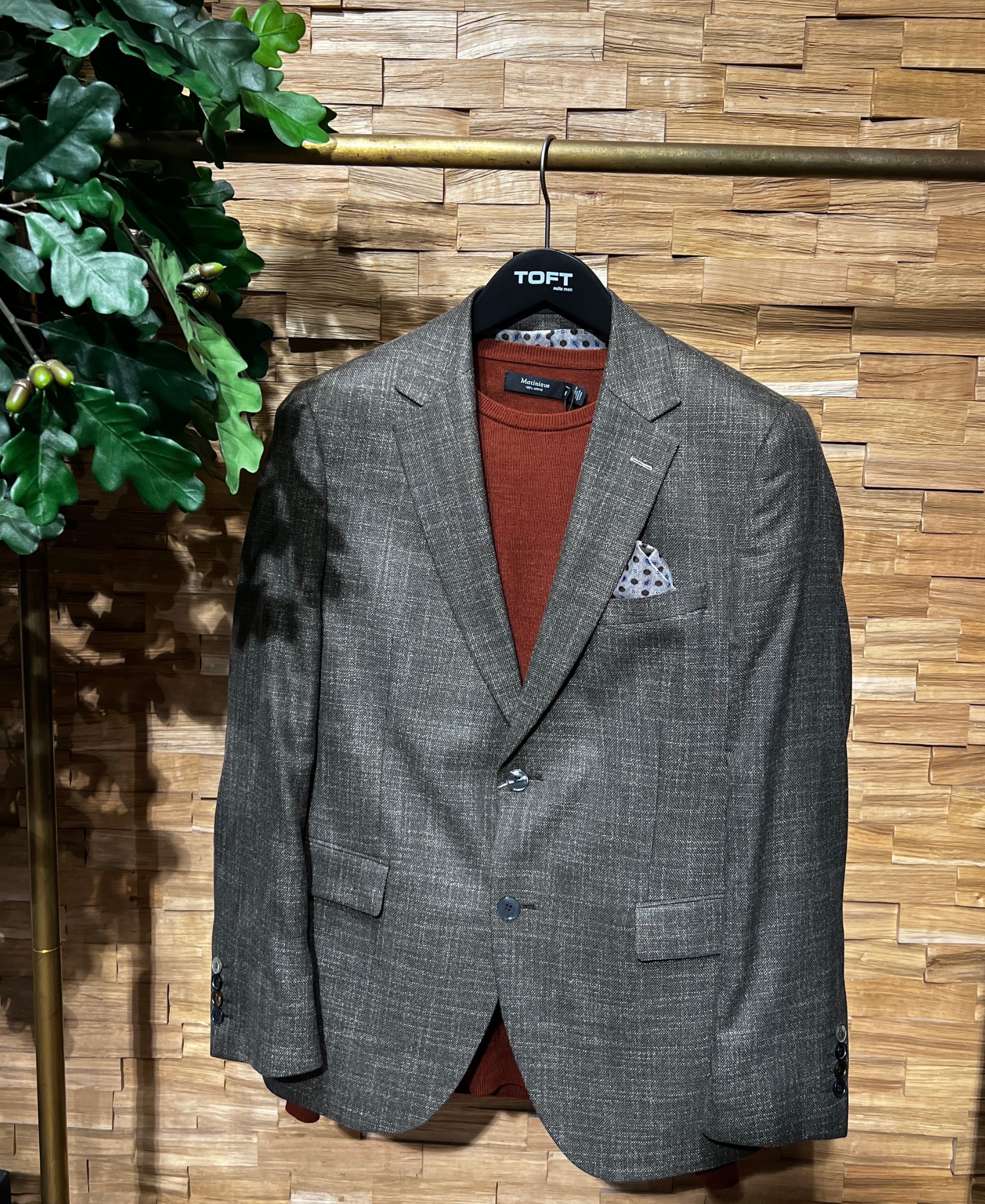 Denne blazer er virkeligt flot, og har den smarte detalje, at den altid har et påsyet pyntetørklæde med sig. Du skal blot trække foret op i brystlommen, og så har du et pænt pyntetørklæde. Du kan selvfølgelig også bruge andre pynteklude, det er helt op til dig. Den er enkeltradet, hvilket betyder at den lukkes med en række knapper. Denne blazer har to knapper til lukning.