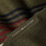 Tidsløst halstørklæde fra Tommy Hilfiger med signatur striben i midten. Tørklædet er med frynser i begge ender.
