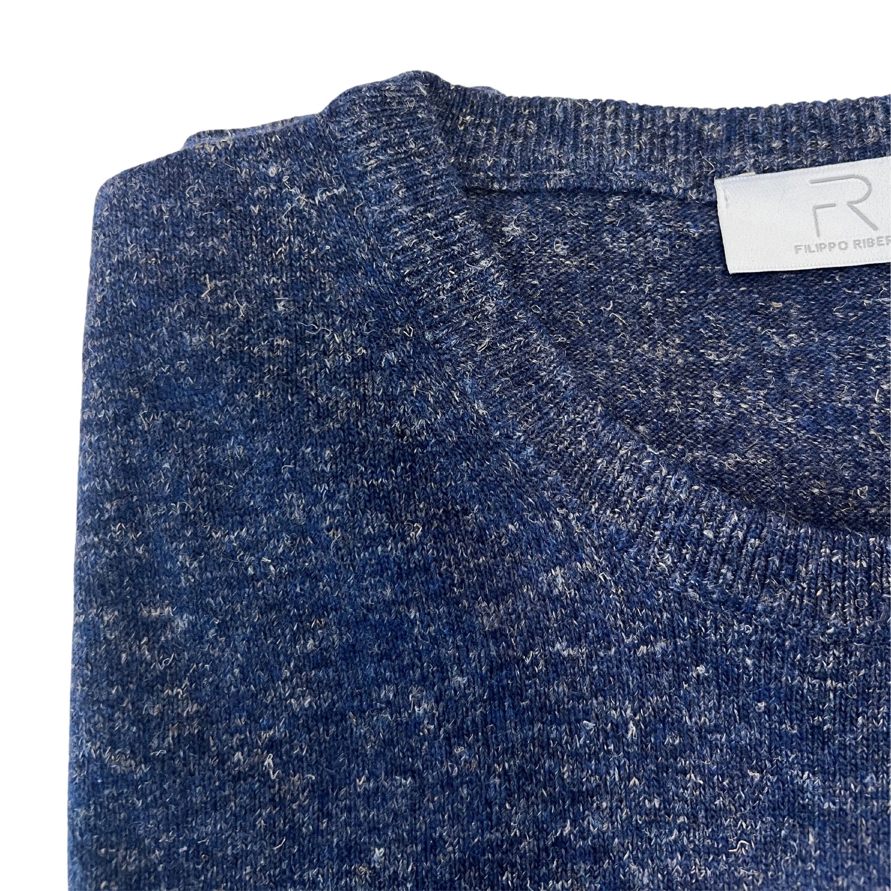 Du kan ikke gå efteråret og vinteren i møde uden en flot striktrøje. Og med denne flotte blåmelerede sweater går du på ingen måde galt i byen. Strikken er lavet i Italien med en blanding med både uld og hør. Trøjen er i regular fit og har en klassisk o-hals. Den har en fin klassisk ribkant ved håndledene, halsen og ved mavens afslutning. Striktrøjen findes i 8 forskellige flotte farver, så du kan helt sikkert finde en til dig.