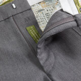 Grå garbardine buks i uld kvalitet fra Meyer i model Bonn. Buksen har elastik i taljen der kan strækkes op til 8 cm, hvilket gør den til en perfekt rejsebuks.