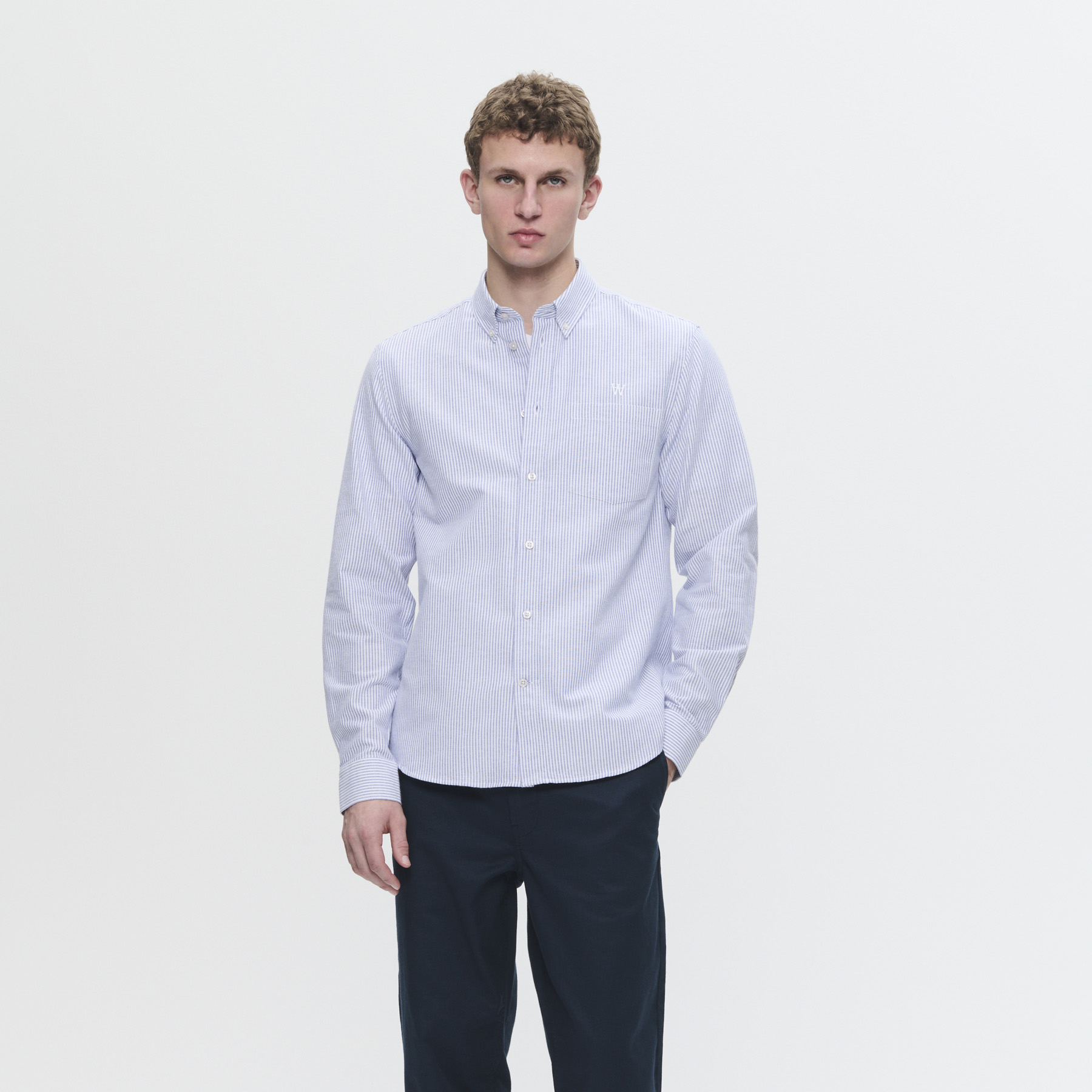 Designet inkluderer en praktisk brystlomme og en button down krave, der tilføjer et lækkert touch til det samlede udtryk. De blå og hvide striber giver et friskt og moderne udseende, der kan styles på mange måder.