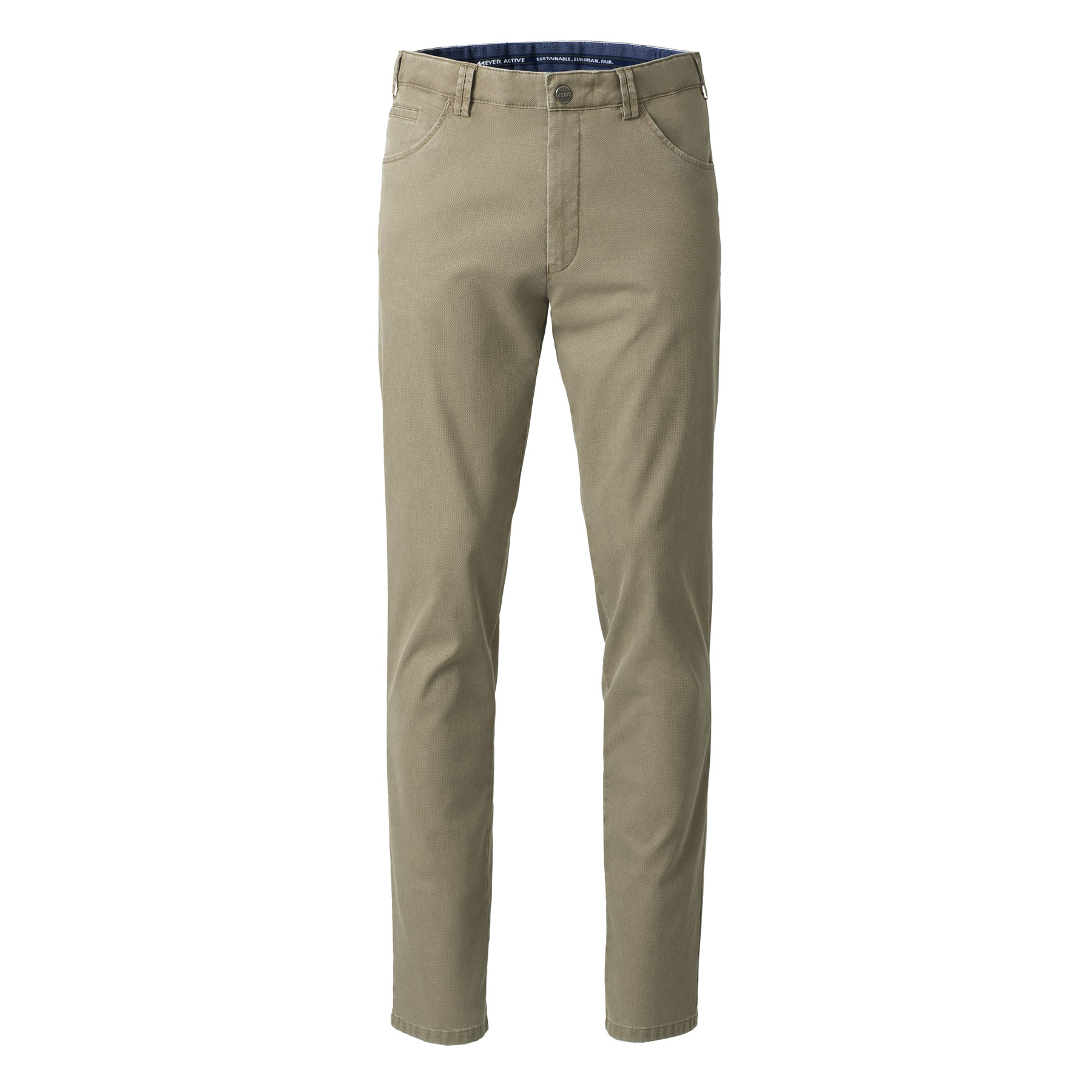Chino med jeans lomme på front & 2 baglommer med knap. Buksen er med masser af stretch i en blød og let bomuld & tencel blanding.