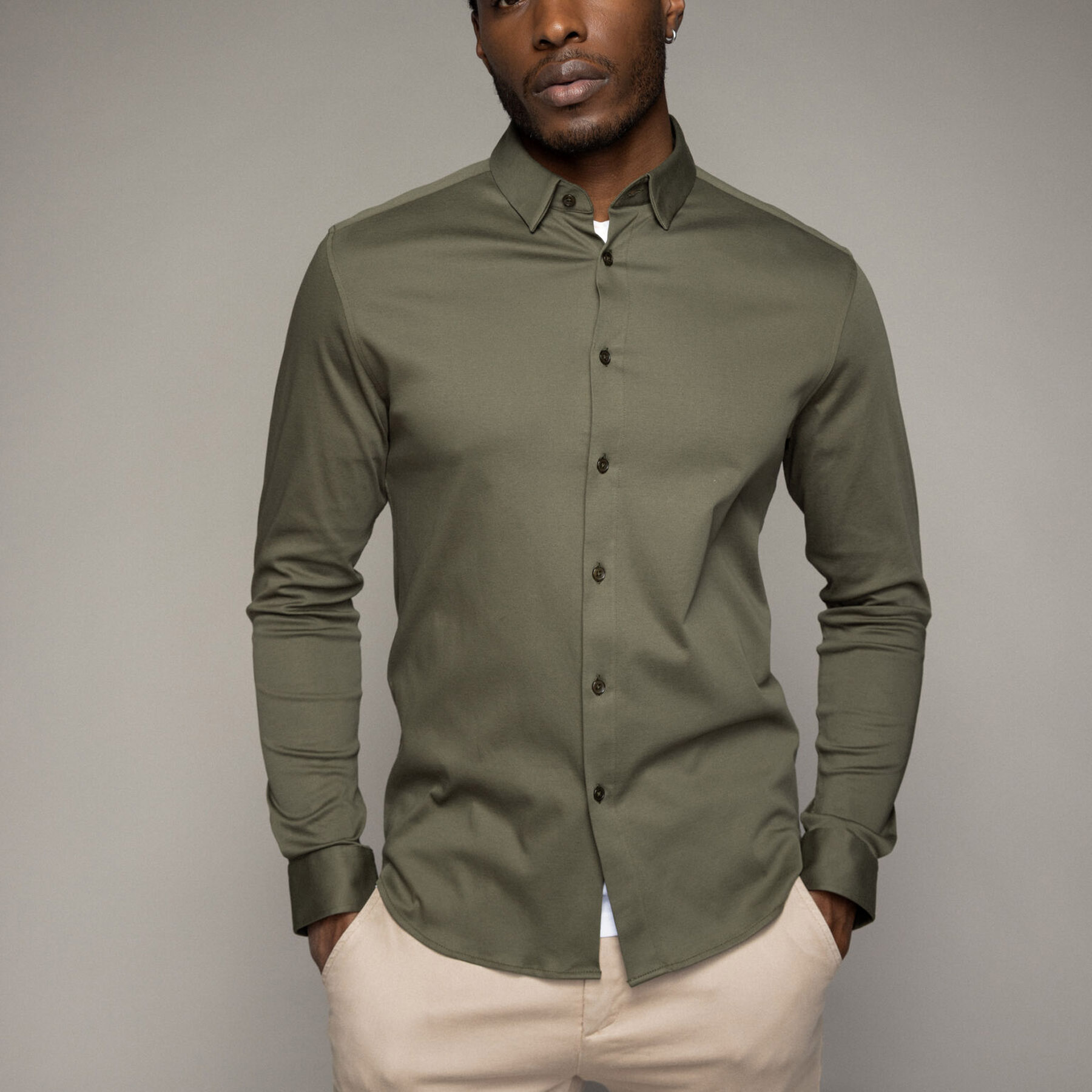 Denne skjorte er med en tætsiddende silhuet med knaplukning, manchetknapper og en skjortekrave med skjult knaplukning. Ved at benytte en dobbeltstrikket bomuldskvalitet, får du en stærkere, mere strækbar og holdbar skjorte end ved en normal jersey. Skånsom mod huden og med maksimal bevægelsesfrihed og komfort. Et uafhængigt laboratorie har testet holdbarheden af style Perry T-shirt i sort, som er syet af samme metervare og fra samme leverandør som Marco Jersey Skjorten. Resultatet viser, at den kan vaskes hundrede gange uden væsentlige ændringer af farve, facon eller synligt slid i sømme og kanter