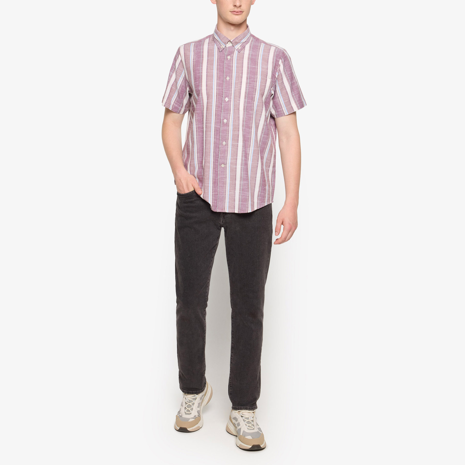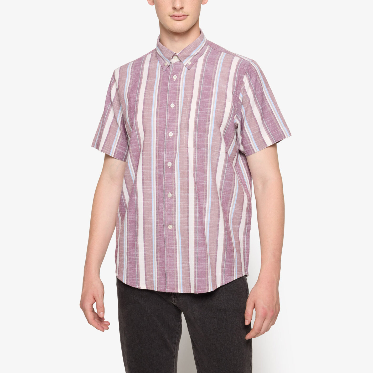 Denne skønne sommer skjorte i en flot strib er udstyret med brystlomme & button down