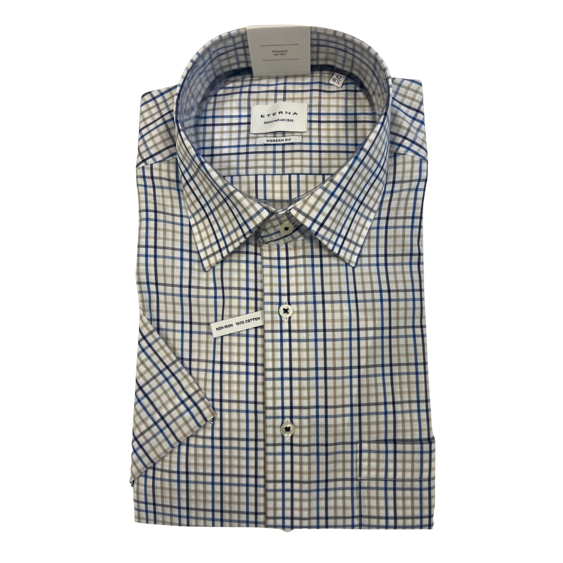 Opdag den moderne Eterna - 1223 C181 25 K/Æ Skjorte i en stilfuld sand/brown farve. Denne kortærmede skjorte er ideel til både hverdag og festlige anledninger. Fremstillet af 100% bomuld, sikrer den en blød og behagelig pasform, som føles fantastisk mod huden. Med sit non iron materiale slipper du for besværet med strygning, så du altid ser skarp og velplejet ud.