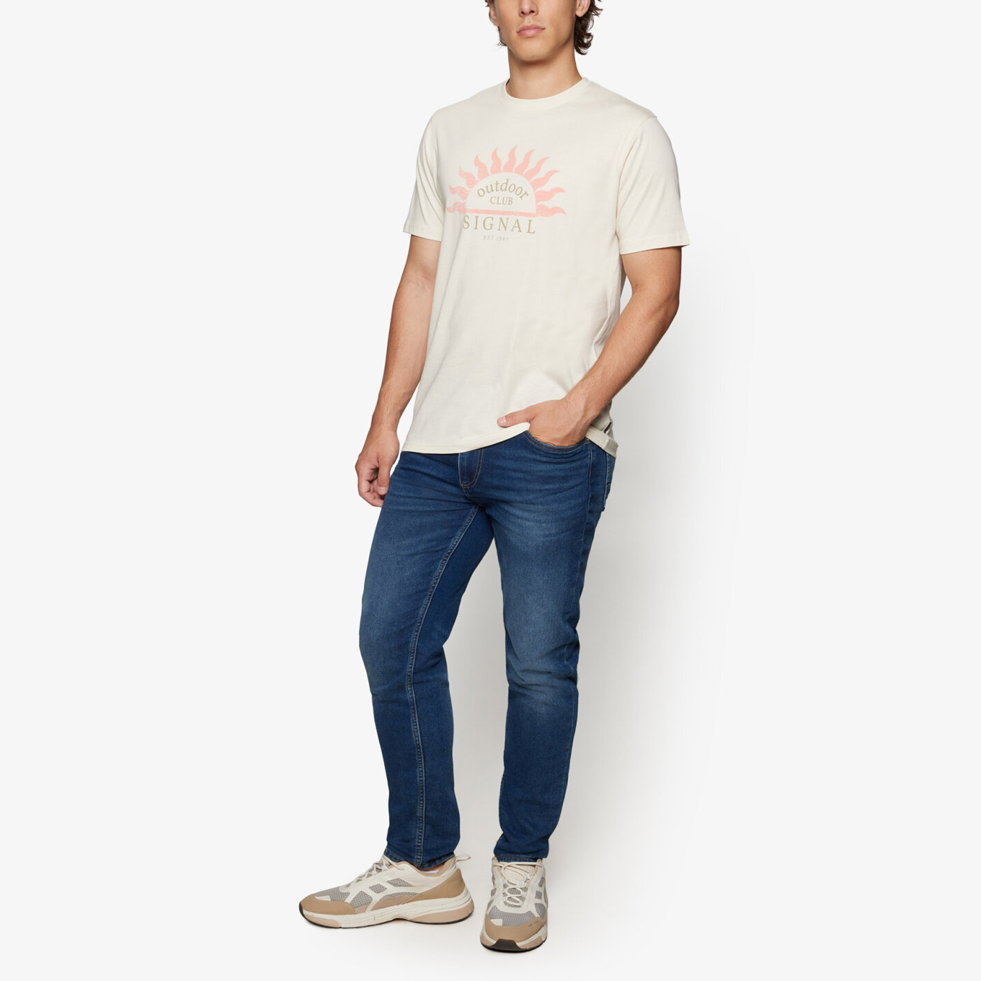 En casual og komfortabel T-shirt fra Signal med et moderne print på brystet. Gabriel T-shirten er lavet i en blød bomuldskvalitet, der sikrer god pasform og høj komfort hele dagen. Den har en klassisk rund hals og et tidløst design, som gør den let at style med både jeans, shorts og chinos.