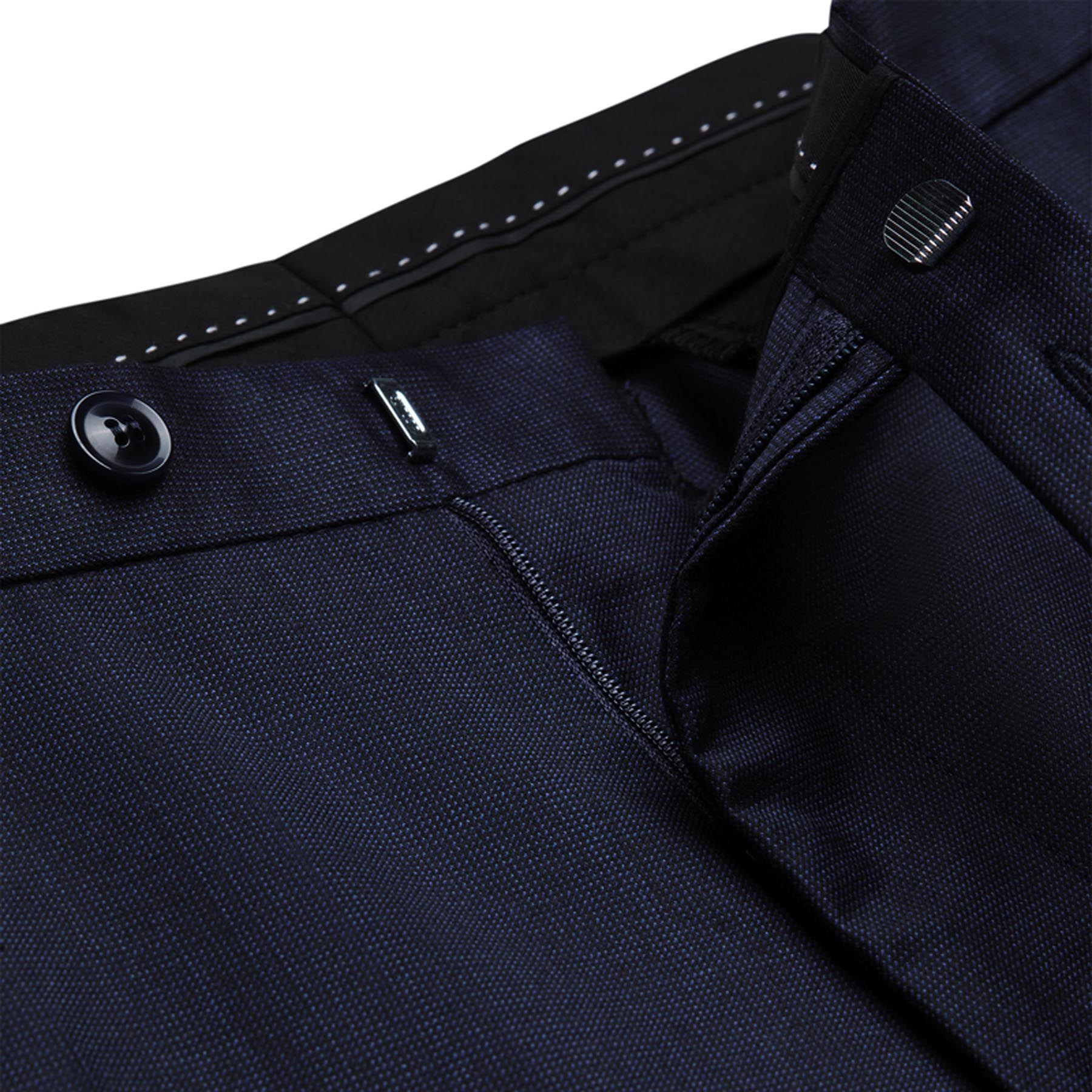 Klassisk habitbuks i høj kvalitet fra Digel, model Apollo. Bukserne er fremstillet i en eksklusiv metervare med 98% ren ny uld og 2% elastan, hvilket giver både komfort, bevægelighed og en elegant pasform. Designet i en tidløs navy farve, der gør dem alsidige til både forretningsbrug og festlige lejligheder.