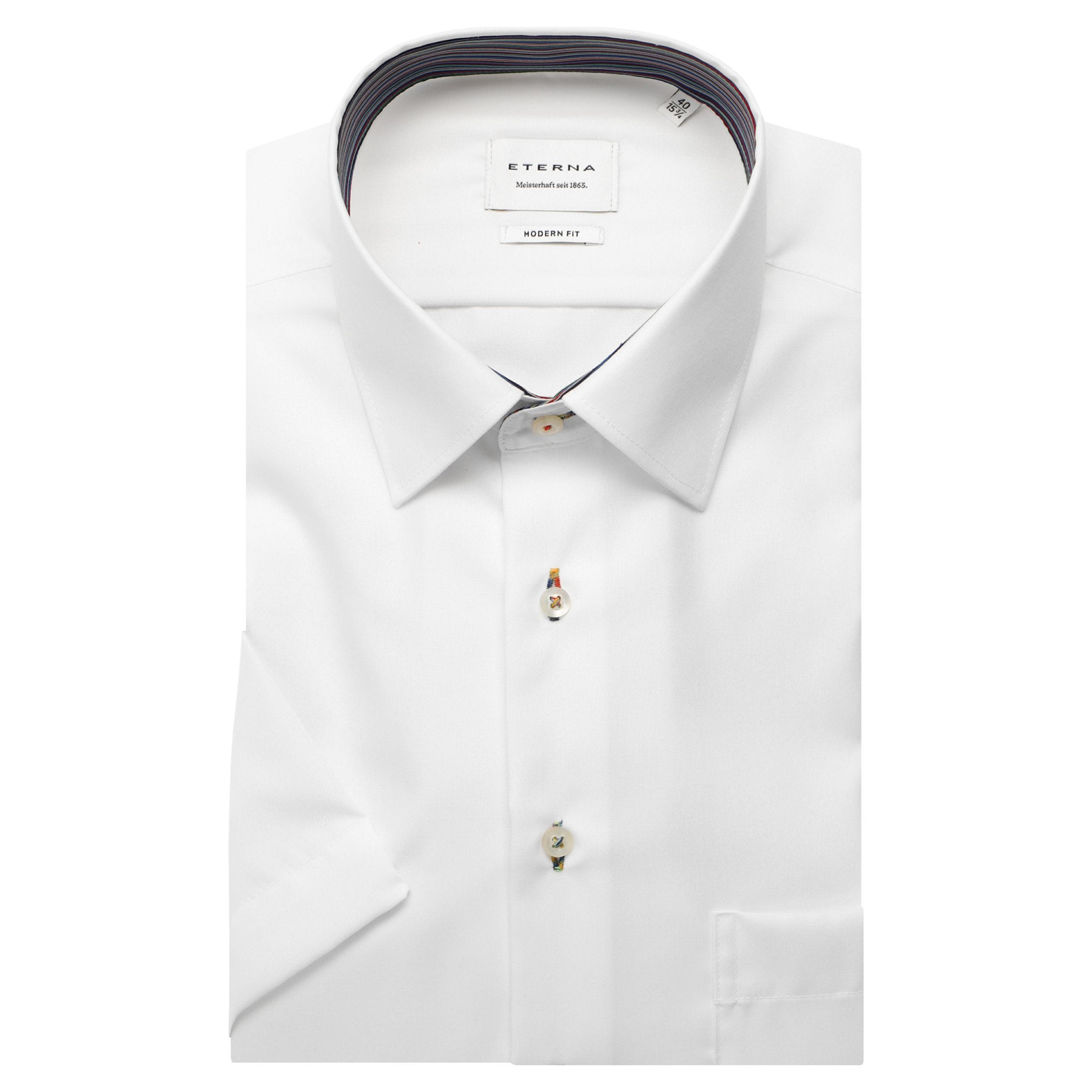 Opdag den perfekte skjorte til sommerens varme dage med Eterna skjorte med korte ærmer. Denne stilfulde skjorte i klassisk hvid er lavet af 100% strygefri bomuld, hvilket sikrer, at du altid ser skarp ud uden besværet med strygning. Med sin lette og åndbare kvalitet er den ideel til både hverdag og festlige anledninger.