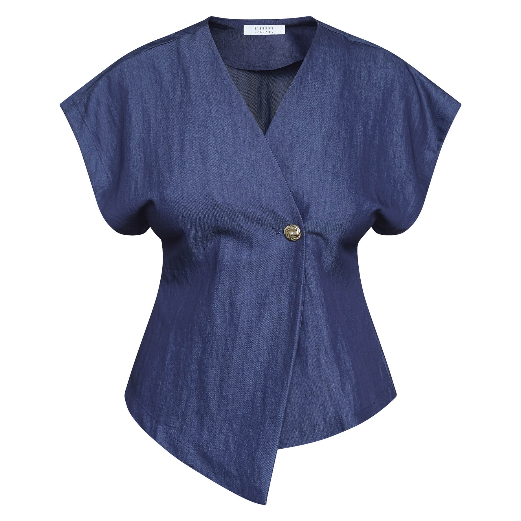Opdag den stilfulde SP GEVELA-VE VEST 940 D.DENIM fra Sisters Point, der er designet til den moderne kvinde. Denne elegante vest har et asymmetrisk snit og en flatterende v-udskæring, der giver et sofistikeret udtryk. Med brede skuldre og en enkelt knaplukning kombinerer vesten komfort og stil på en unik måde.