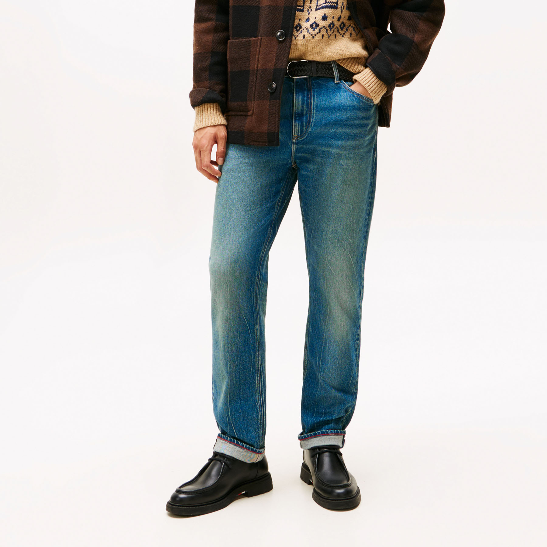 Opdag Tommy Hilfiger - TH Mercer denim | Jeans Teton i en medium blå farve, som er det perfekte valg til enhver moderne mand. Disse straight fit jeans er designet med fokus på både stil og komfort, hvilket gør dem ideelle til både hverdag og festlige lejligheder. Med en praktisk lynlås og fem lommer kan du nemt opbevare dine essentielle ting, mens du ser godt ud.
