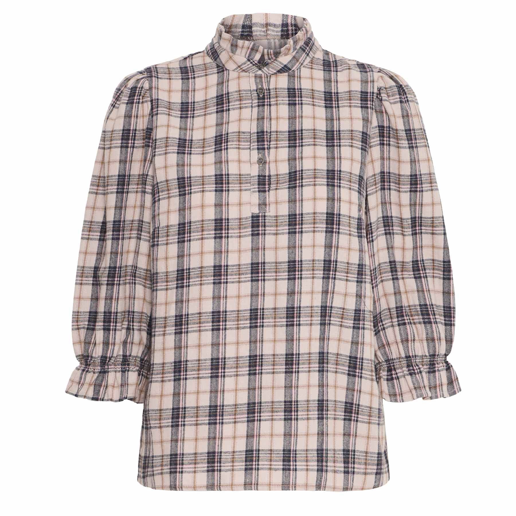 PULZ - PZZEVIE BLOUSE | SKJORTE BEIGE NAVY CHECK