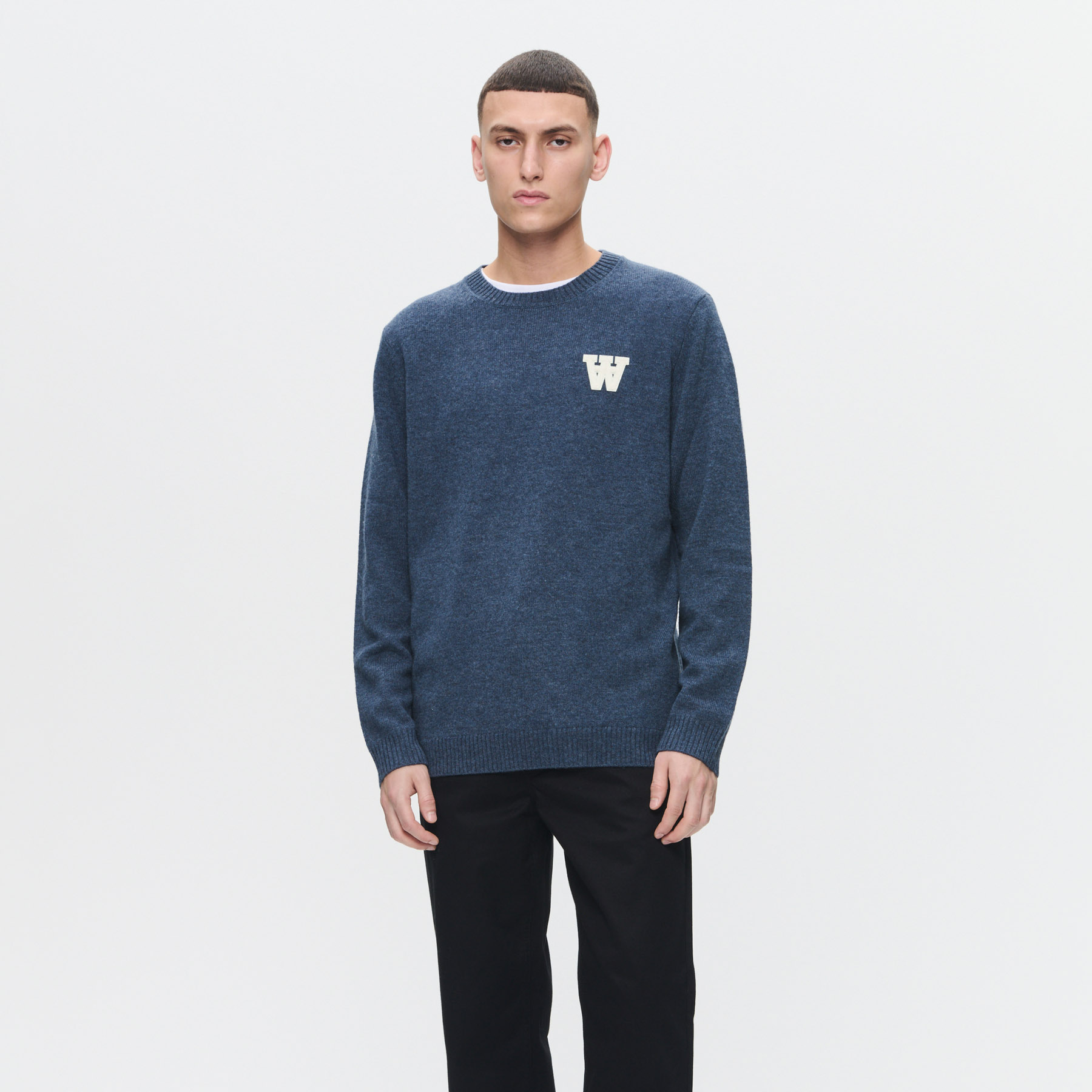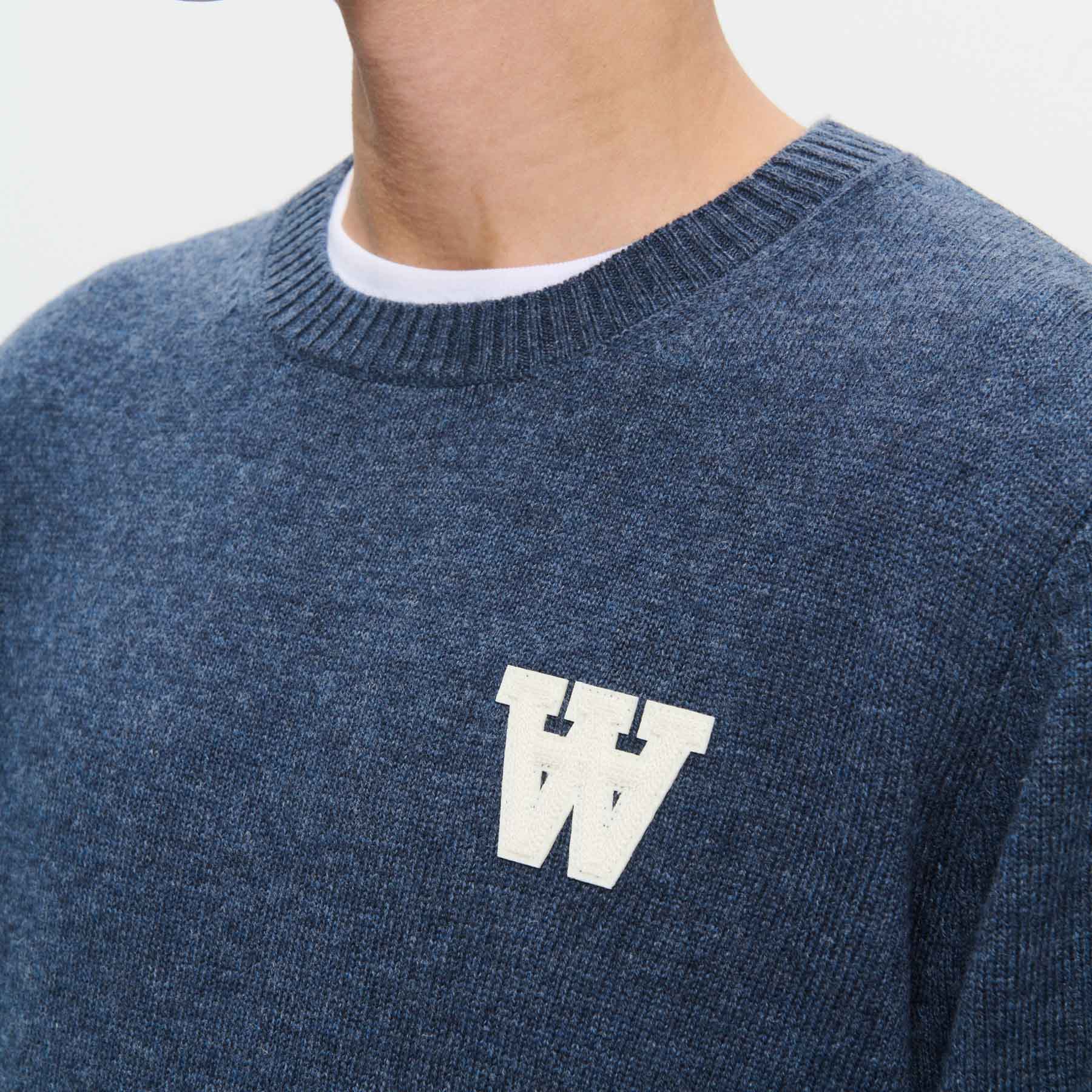 Oplev den ultimative komfort og stil med Wood Wood - Double A Tay sweater i farven Outer Space. Denne pullover er lavet af 100% lammeuld, hvilket sikrer både varme og åndbarhed, perfekt til de kolde dage. Med et regulært fit er denne strik ideel til både afslappede og mere stilfulde anledninger, og den passer perfekt til enhver garderobe.