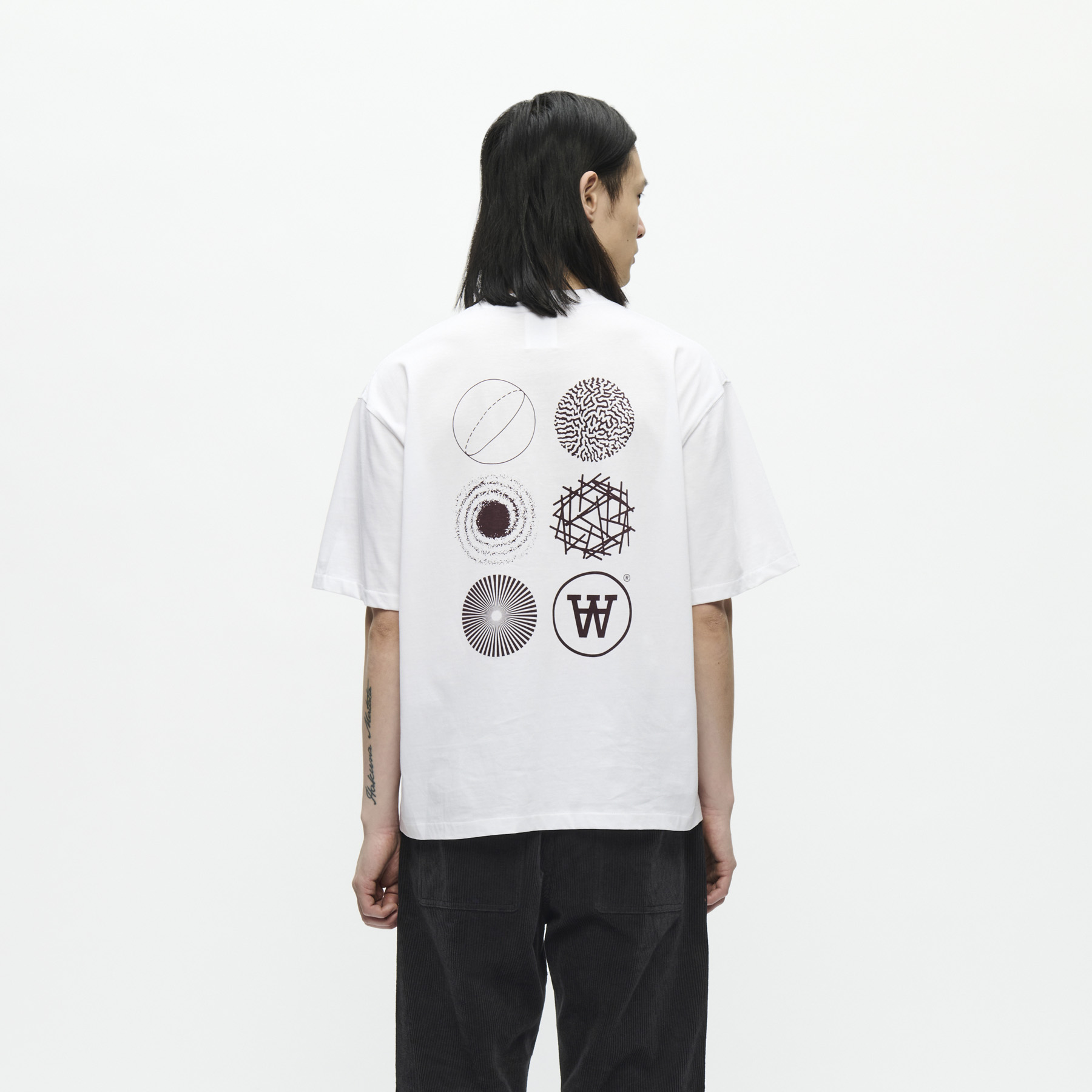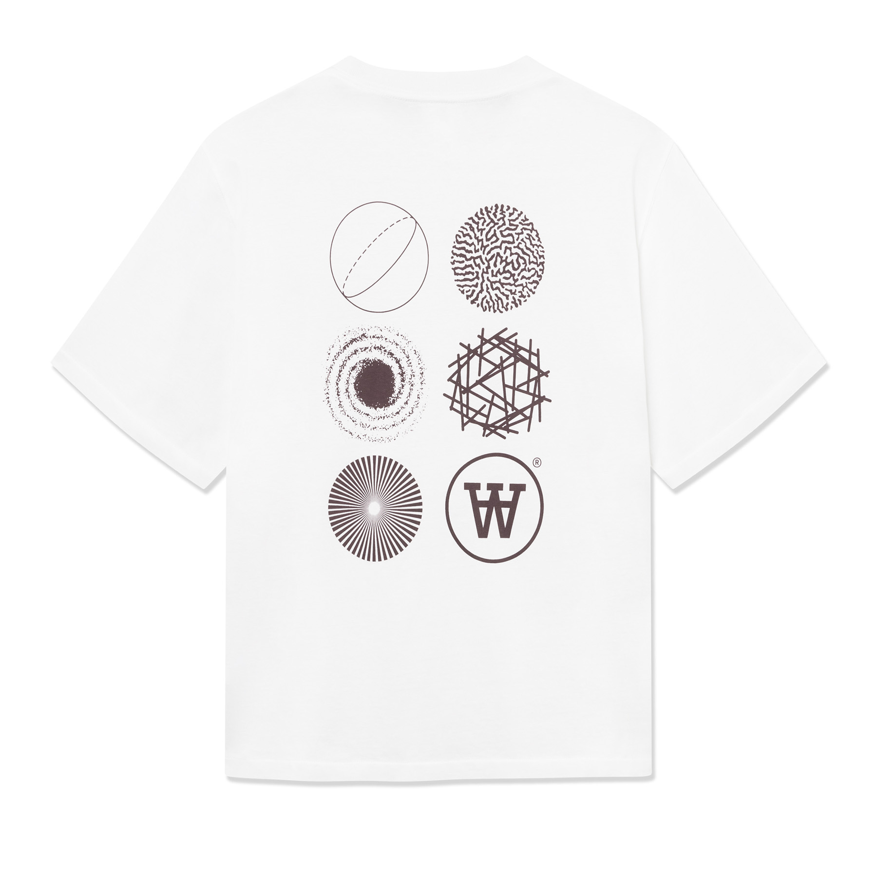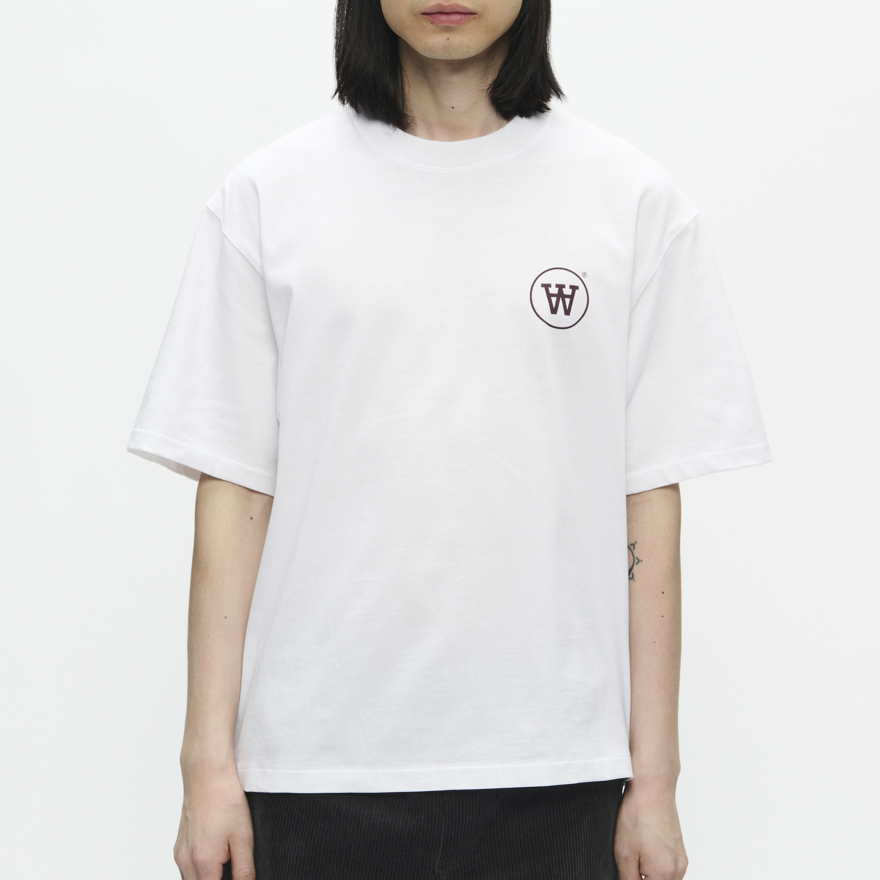 Opdag den perfekte kombination af stil og komfort med Wood Wood - Double A Liam T-shirt i en strålende lys hvid farve. Denne T-shirt er designet til at være en uundgåelig del af din garderobe og er ideel til både hverdag og afslappede anledninger. Fremstillet af 100% bomuld, tilbyder den en blød og åndbar fornemmelse, som gør den behagelig at have på hele dagen.