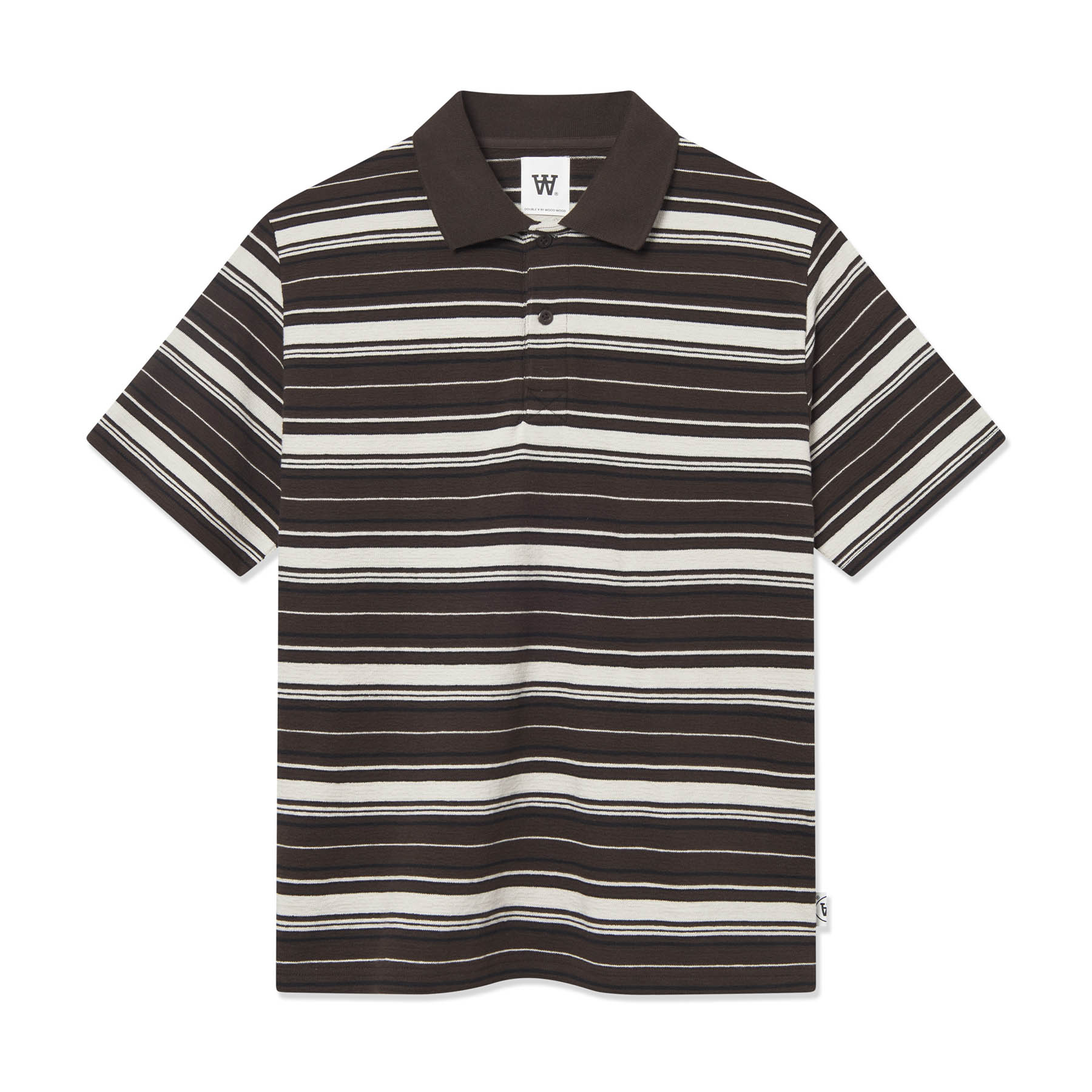 Opdag den ultimative stil med Wood Wood - Double A Colton | Polo T-shirt Delicioso Stripe. Denne strikkede polo t-shirt er lavet af 100% bomuld, hvilket sikrer en blød og behagelig pasform til hverdagsbrug. Med sit moderne design og elegante striber i farven Delicioso Stripe, er denne t-shirt den perfekte kombination af klassisk og trendy. Den har en regular fit, der giver dig mulighed for at bevæge dig frit, samtidig med at du ser skarp ud.