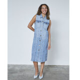Opdag den perfekte kombination af stil og komfort med SISTERS POINT - FAISA-DR kjolen i en smuk denimvask. Denne ærmeløse midi-kjole er designet til at fremhæve din figur og give dig et moderne look, som er ideelt til både hverdagsbrug og festlige lejligheder. Med en gennemgående knaplukning og en klassisk krave, bringer FAISA-DR et strejf af tidløs elegance til din garderobe.