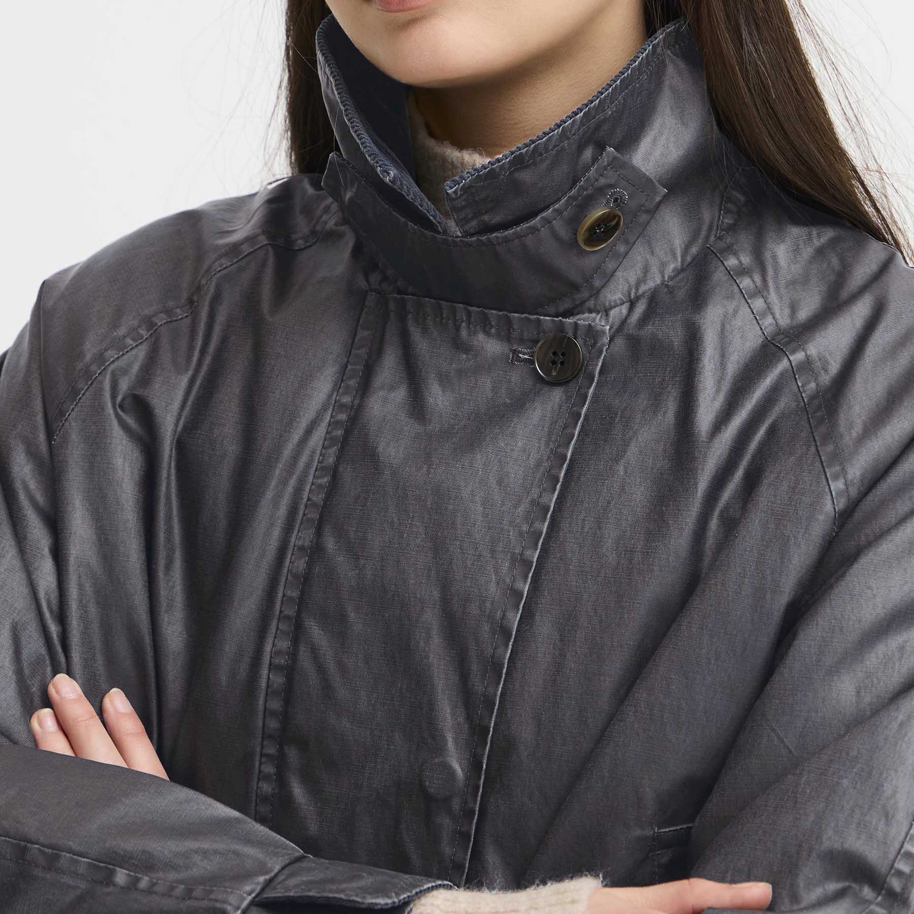 Opdag den stilfulde ICHI - IHGANILO JA vindjakke i en elegant mørk navy farve. Denne jakke er designet til den moderne kvinde, der ønsker at kombinere komfort med et trendy look. Lavet af en blanding af 53% bomuld og 47% polyester, er denne OILSKINSJAKKE både blød og holdbar, hvilket gør den perfekt til både hverdag og festlige anledninger.
