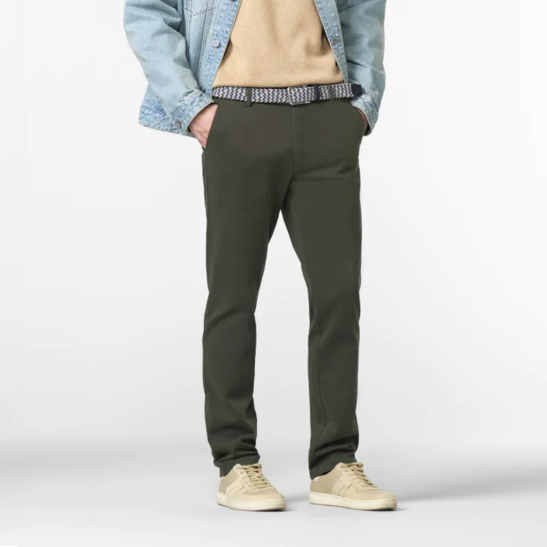 Opdag Meyer - Oslo 5652 29 i en stilfuld Chino Green, det perfekte valg til enhver mand, der ønsker at kombinere komfort og stil. Disse chinos uden læg er ideelle som bil- og rejsebukser, da de er designet med to elastiske zoner i linningen, der sikrer en optimal pasform hele dagen. Det fløjlsbløde twill i topkvalitet giver ikke kun varme, men også en uovertruffen bærekomfort, så du kan føle dig godt tilpas uanset anledningen.