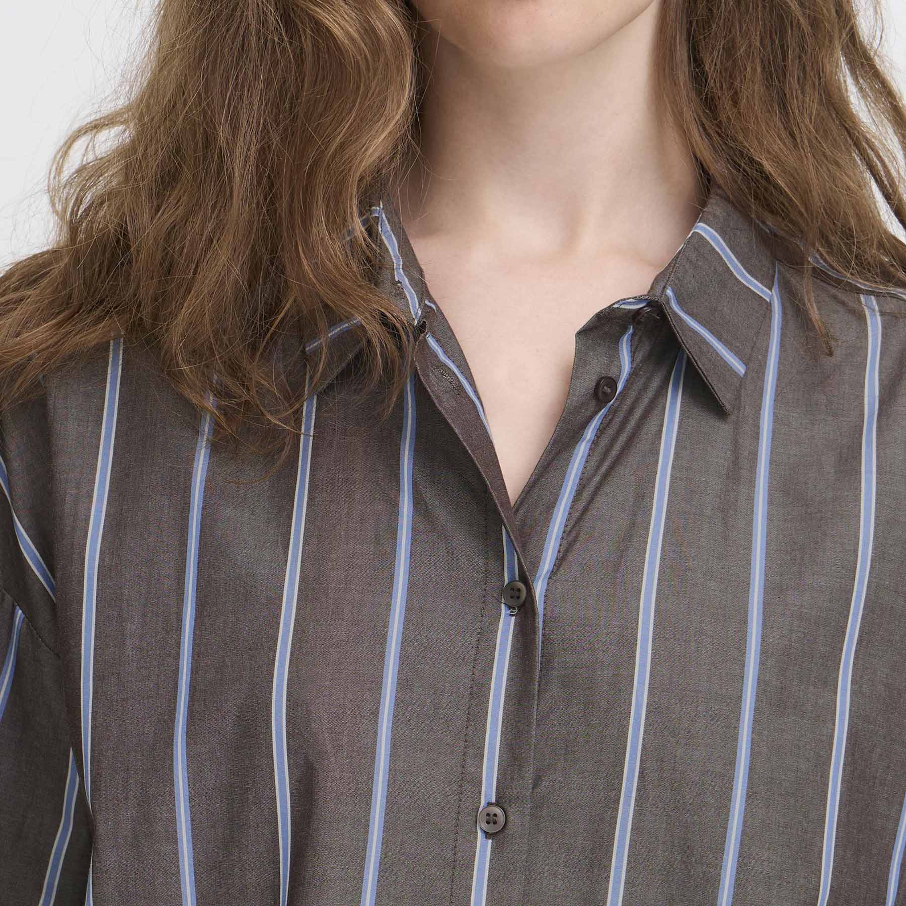 Skjorten fås i størrelserne 34, 36, 38, 40 og 42, så du nemt kan finde den perfekte størrelse til din figur. Den brune stribedesign gør, at skjorten kan styles på mange forskellige måder – perfekt til både hverdag og fest. Kombiner den med jeans for et afslappet look, eller match den med en nederdel for en mere elegant stil.