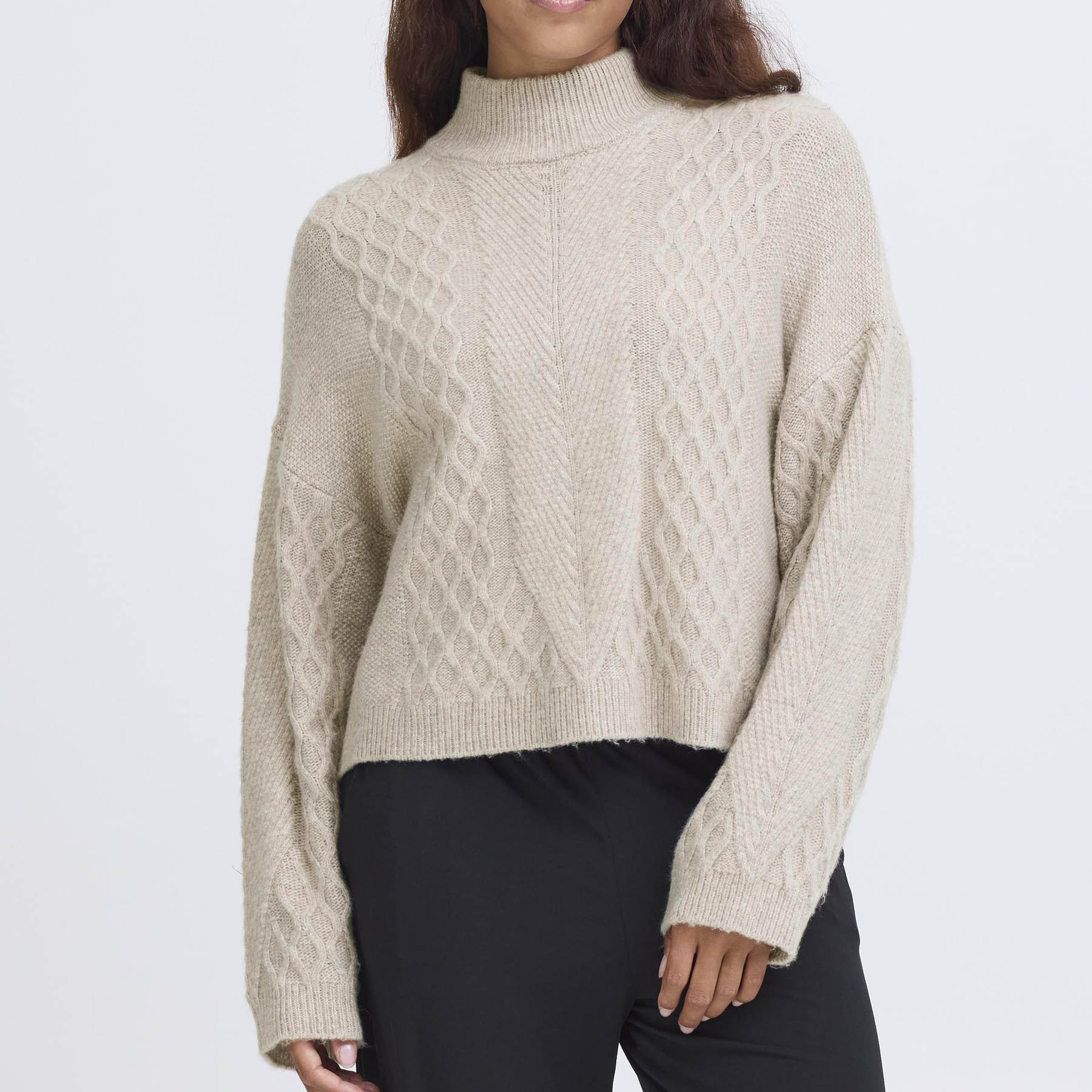 Den rullekrave design og det flotte mønster i vævningen tilføjer et unikt præg, der gør denne trøje perfekt til både hverdag og fest. Med størrelser fra XS til XL passer IHMYLLE trøjen til enhver kropstype, så du kan føle dig godt tilpas og se fantastisk ud.
