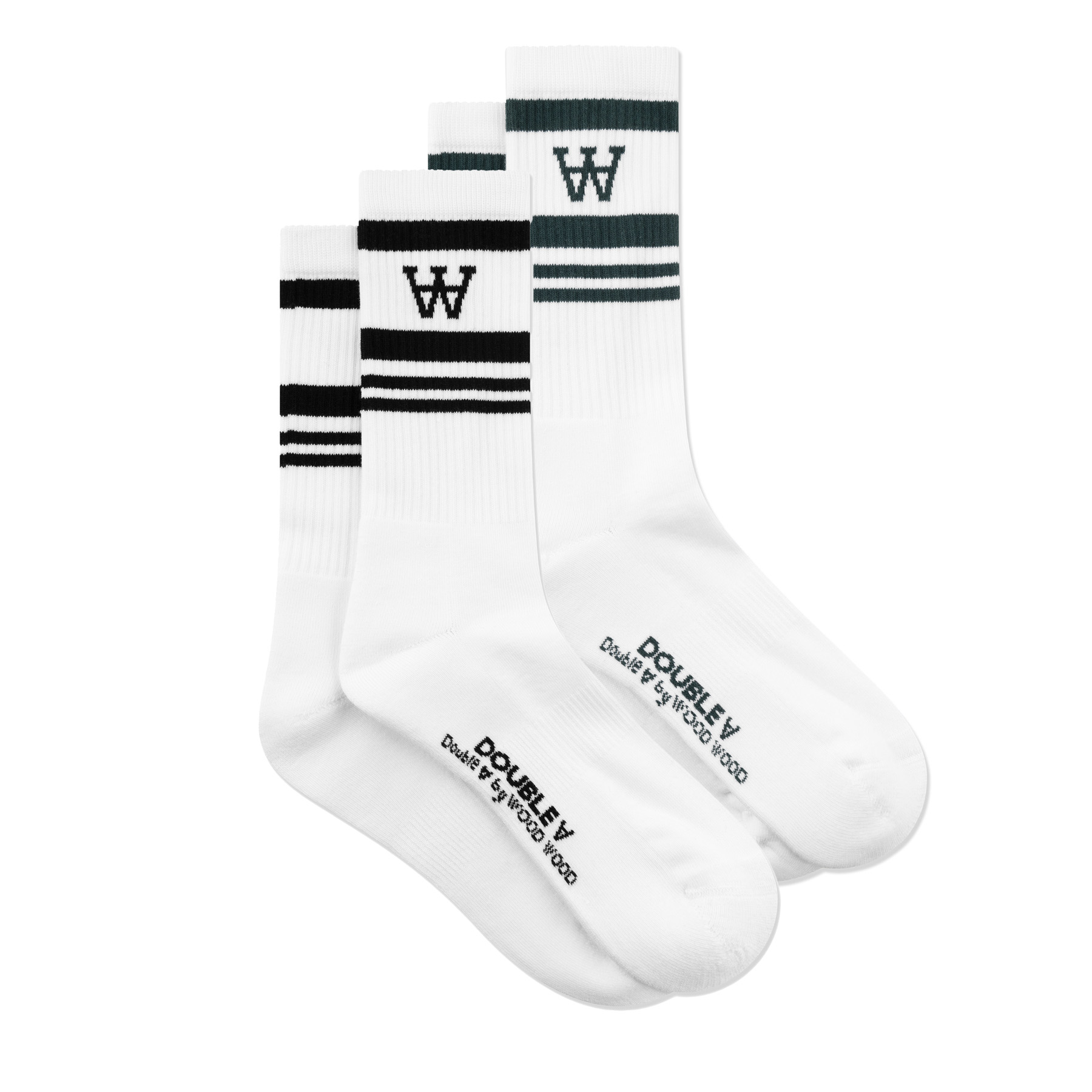 Wood Wood Double A - Ryder 2 pack socks | Tennissokker White Black