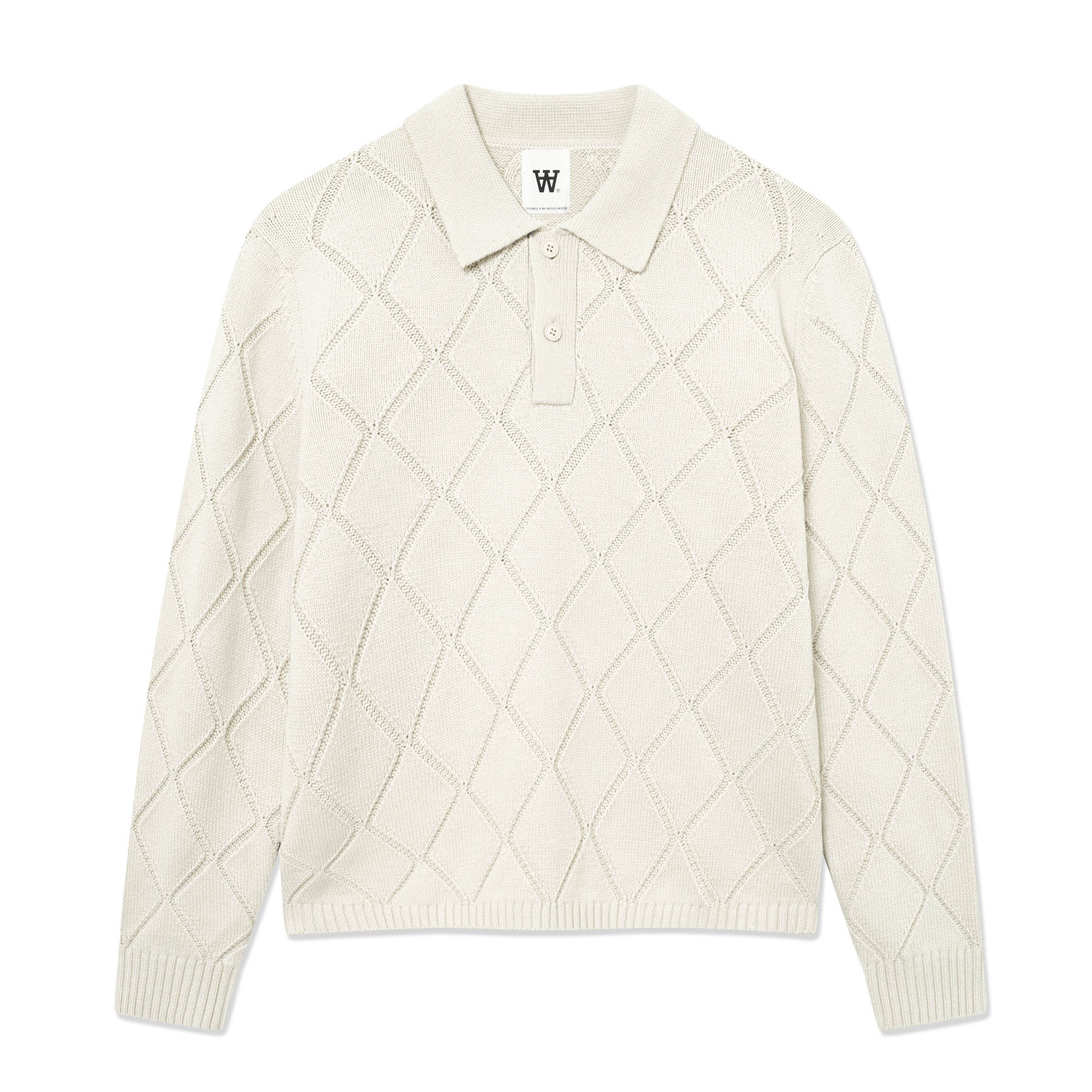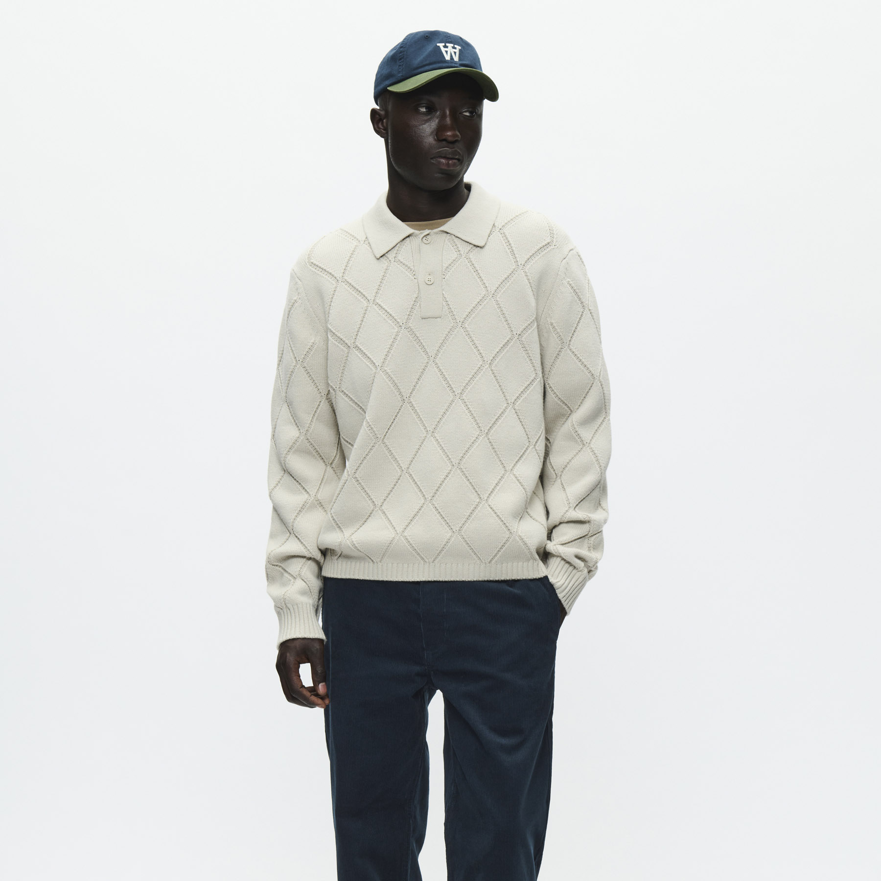 Oplev den perfekte kombination af stil og komfort med Wood Wood Double A - Findus polo i farven Moonstruck. Denne striktrøje er designet til den moderne mand, der ønsker at se skarp ud uden at gå på kompromis med komforten. Fremstillet af en eksklusiv blanding af 55% uld og 45% bomuld, giver denne polo dig en blød og behagelig følelse, samtidig med at den holder dig varm på køligere dage.