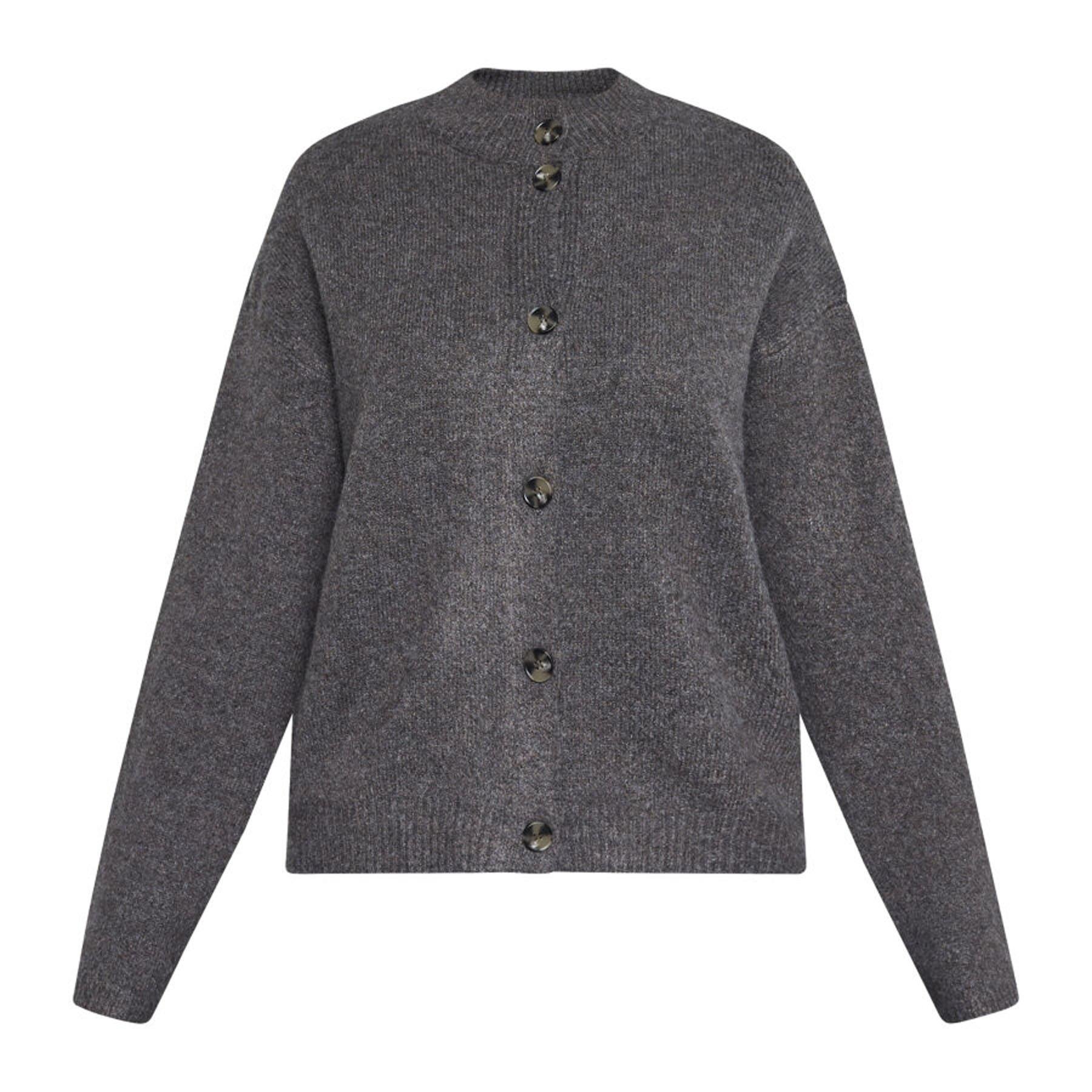 Cardiganen er fremstillet af en skøn blanding af 35% akryl og 47% polyester, hvilket giver en blød og behagelig følelse mod huden. Den ribstrikkede kant tilføjer et elegant touch og sikrer en god pasform, som falder normalt og flatterer alle kropstyper.