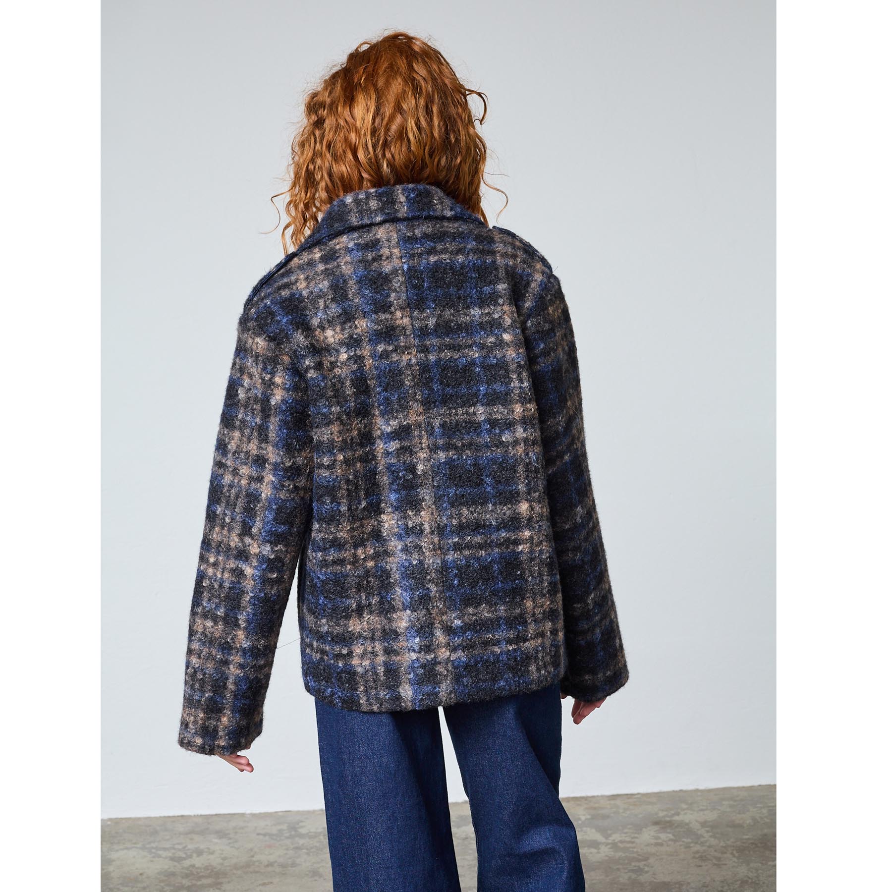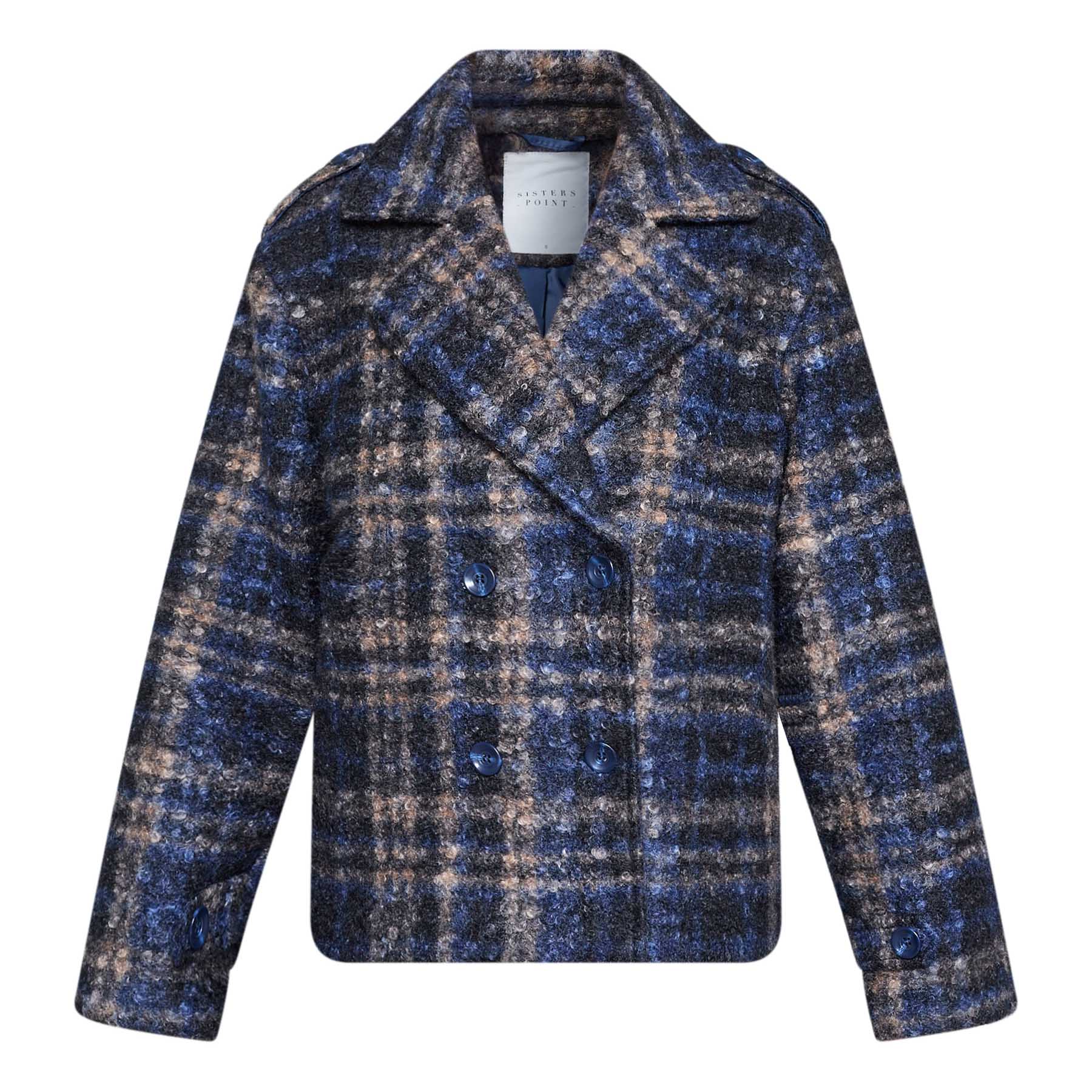 Opdag vores SP CALEB-NEW3 840 BLUE CHECK fra Sisters Point, en elegant damejakke, der kombinerer stil og komfort. Denne kort, dobbeltradede jakke er perfekt til den moderne kvinde, der ønsker at tilføje et trendy element til sin garderobe. Med sit flotte ternede mønster og store revers, skiller jakken sig ud og giver et friskt pust til enhver påklædning.