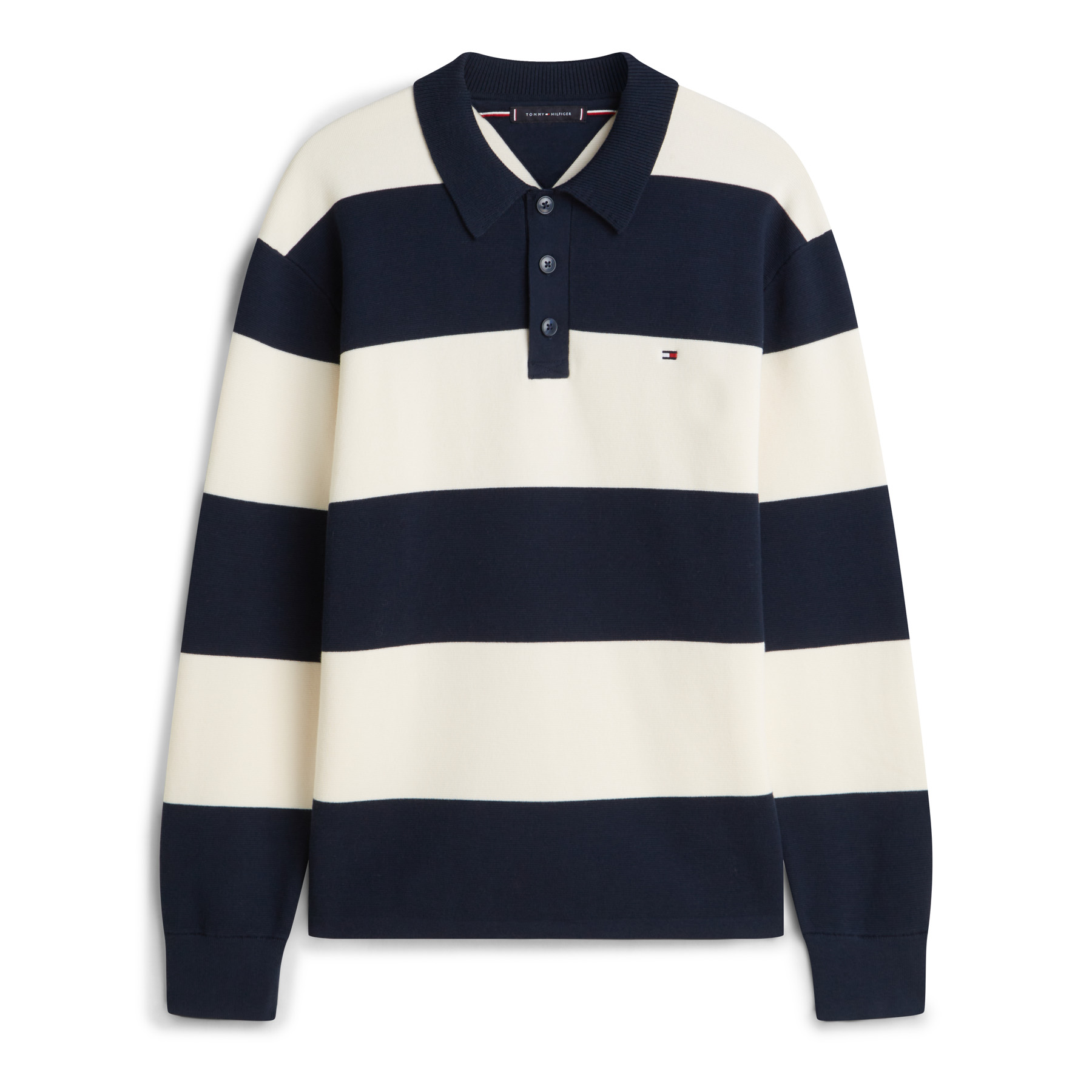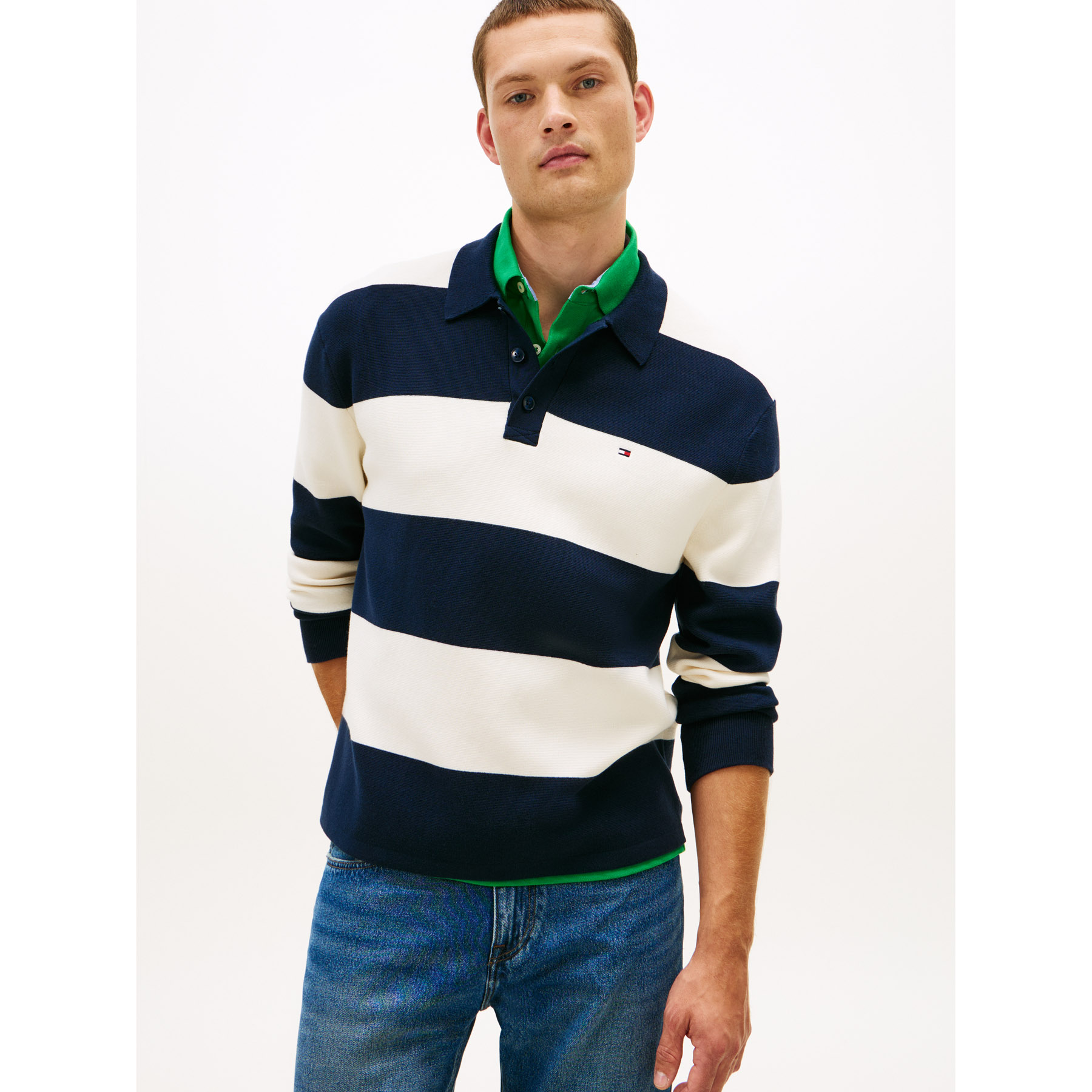 Designet inkluderer en stilfuld stribet overflade, en polo krave og en stolpe lukning med knapper, der tilføjer et sofistikeret touch til dit outfit. Uanset om du skal til en afslappet sammenkomst eller bare ønsker at opgradere din hverdagsgarderobe, er denne striktrøje et perfekt valg. Den fås i størrelserne M, L, XL og 2XL, så du kan finde den helt rigtige pasform. Gør dig klar til at imponere med dette alsidige stykke herretøj fra Tommy Hilfiger.