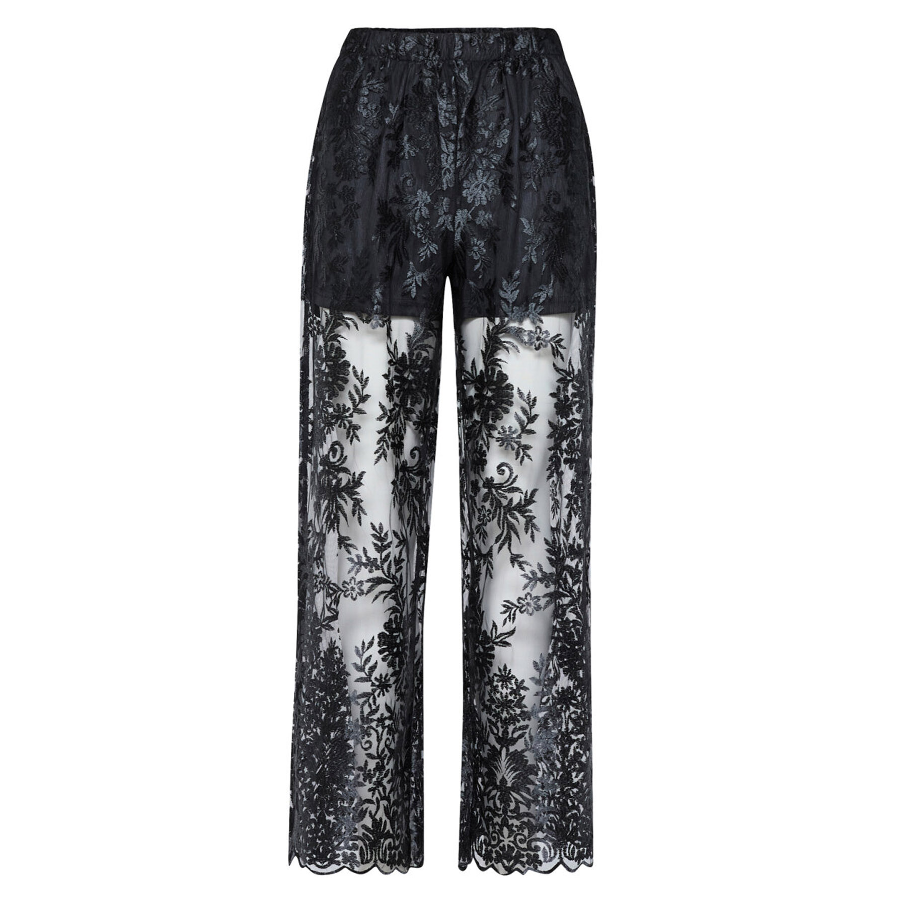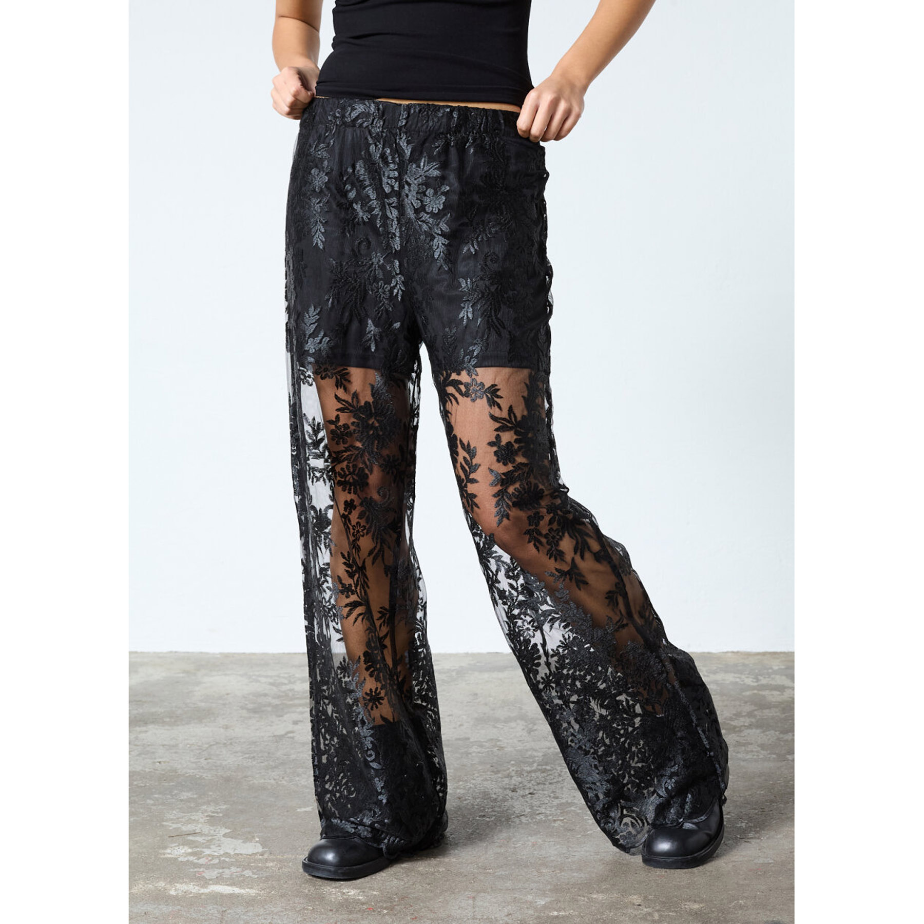 Det unikke blomstermønster i transparent blonde tilfører et feminint præg, mens den elastiske talje sikrer en behagelig og tilpasset pasform. Bukserne er delvist foret med korte indershorts, hvilket giver ekstra komfort og dækning. Uanset om du skal til en fest eller bare ønsker at se godt ud i hverdagen, er disse bukser et must-have i din garderobe.