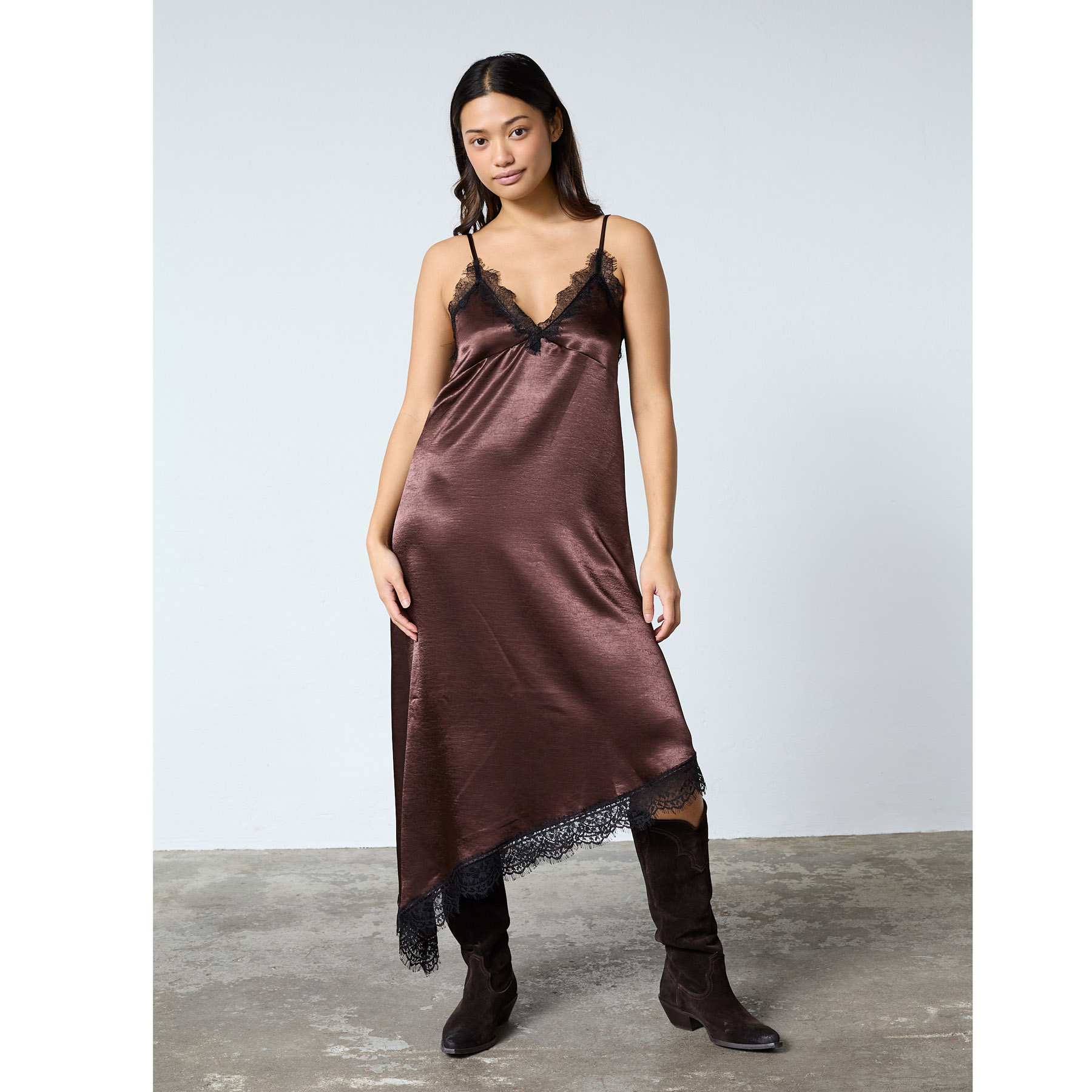Opdag den elegante SISTERS POINT - ELLEN-DR kjole i farverne 220 BROWN/BLACK, perfekt til enhver lejlighed! Denne lang slip-kjole er designet med et skinnende satinlook, der giver et luksuriøst touch til dit outfit. Materialet er lavet af 95% polyester og 5% elastan, hvilket sikrer både komfort og bevægelsesfrihed. Kjolen har tynde, justerbare stropper, der giver dig mulighed for at tilpasse fit til din krop.