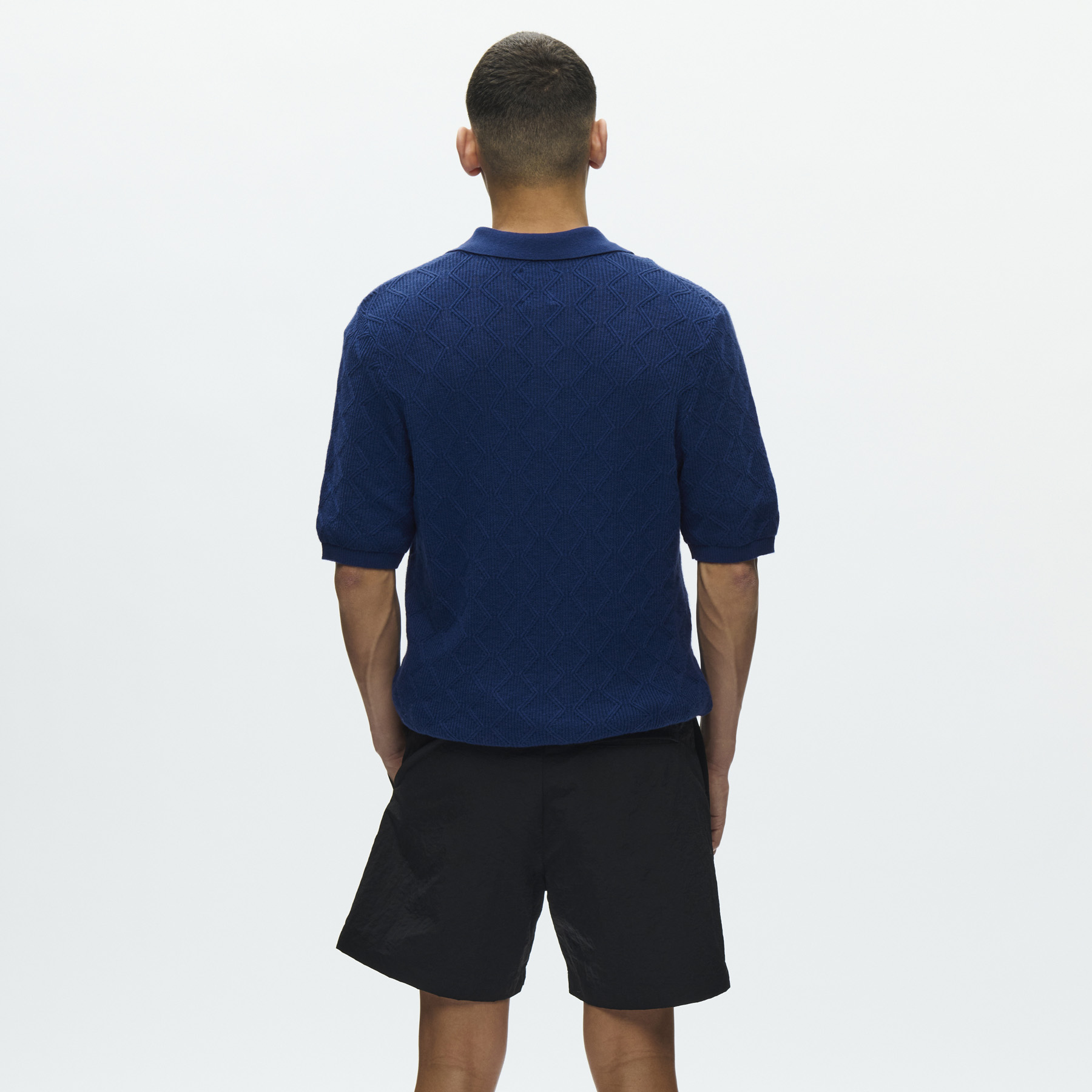 Oplev den perfekte kombination af stil og komfort med Wood Wood - Lamin Polo T-shirt i Navy Peony. Denne strikkede polo t-shirt fra Double A by Wood Wood er designet til den moderne mand, der søger en uformel, men alligevel stilfuld påklædning. T-shirten er lavet af en kvalitetsblanding bestående af 60% økologisk bomuld, 30% polyamid og 10% uld, hvilket giver en behagelig og blød fornemmelse mod huden.