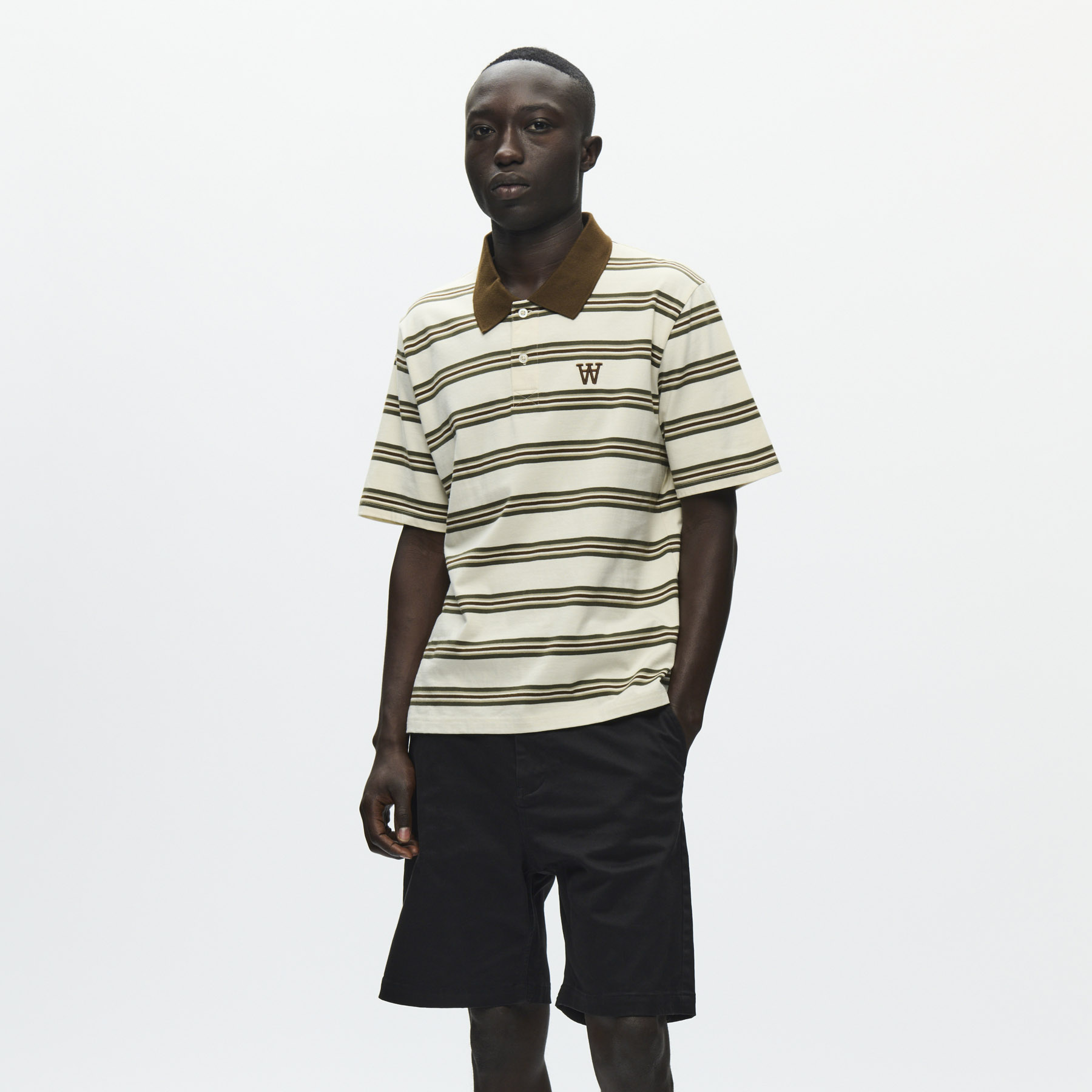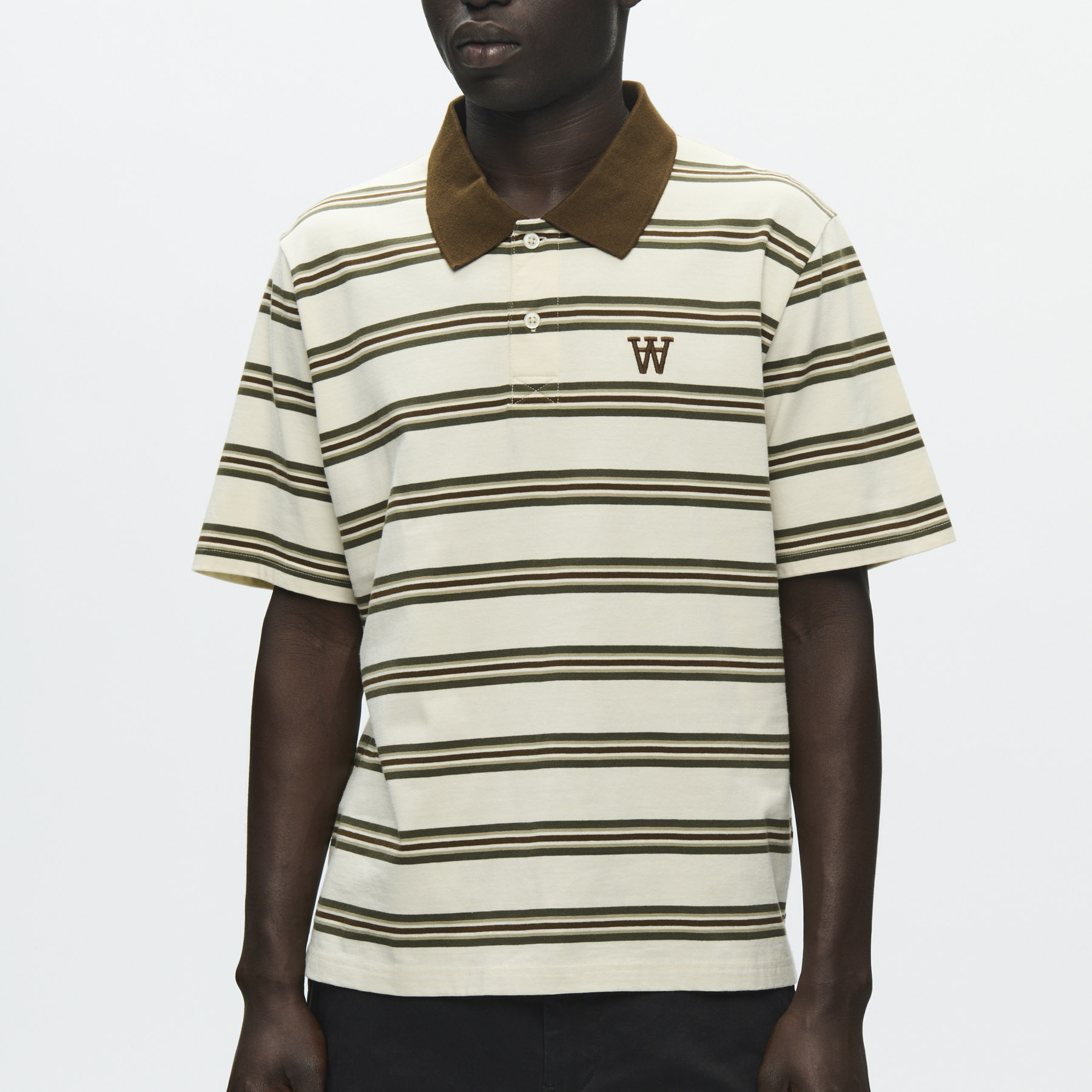 Opdag Wood Wood Colton poloen fra Double A by Wood Wood – en stilfuld tilføjelse til din garderobe. Denne herre polo med striber kommer i farven 304632 Desert Palm, der giver et friskt og moderne look. Den er lavet af 100% bomuld, hvilket sikrer en blød og behagelig fornemmelse mod huden.