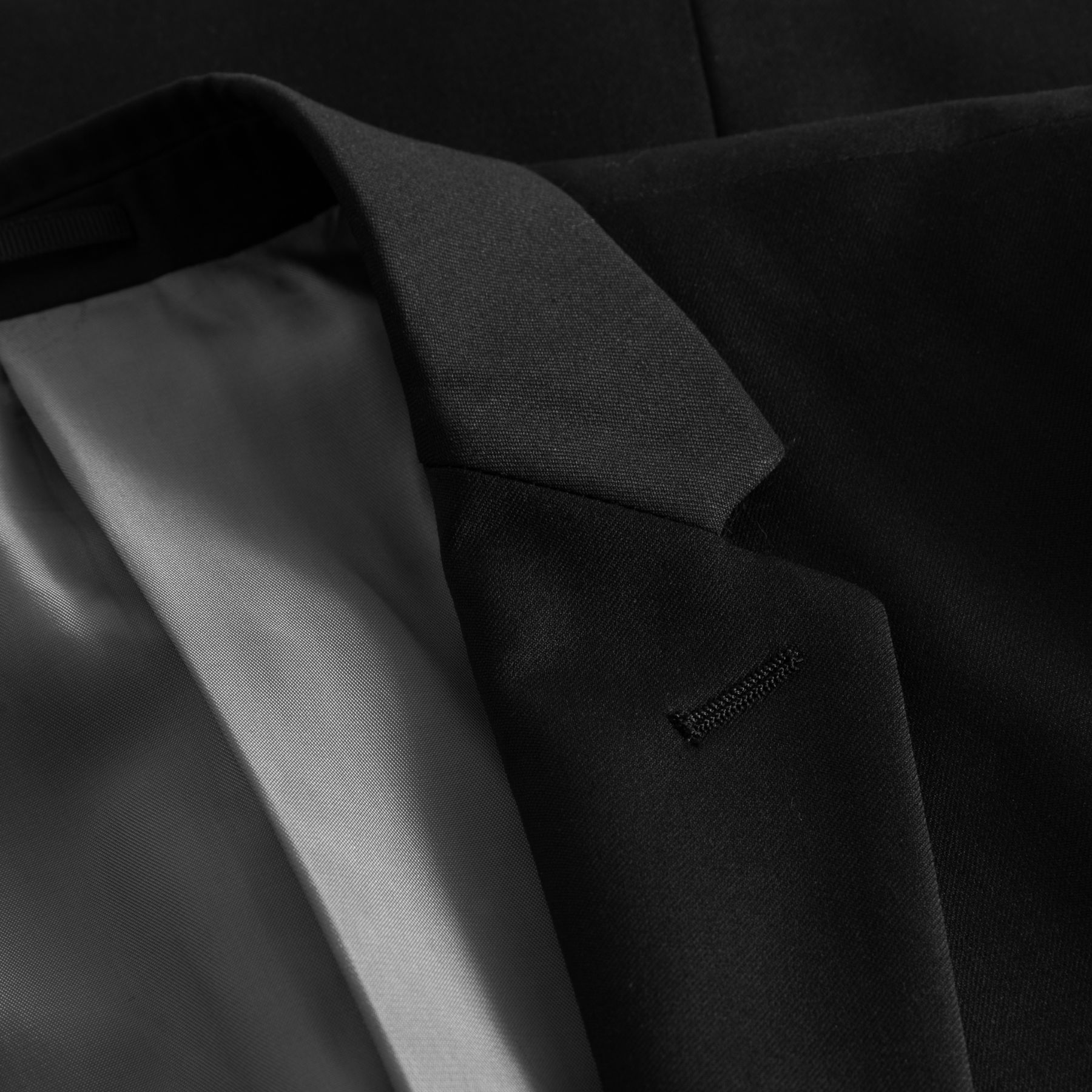 Elegant, stilren sort Matinique blazer i en behagelig stretchkvalitet med et moderne business fit. George blazer har et slankt revers, to knapper, forlommer med klap, en enkelt brystlomme og dobbelt slids bagpå. Fås også i konfirmand størrelser!