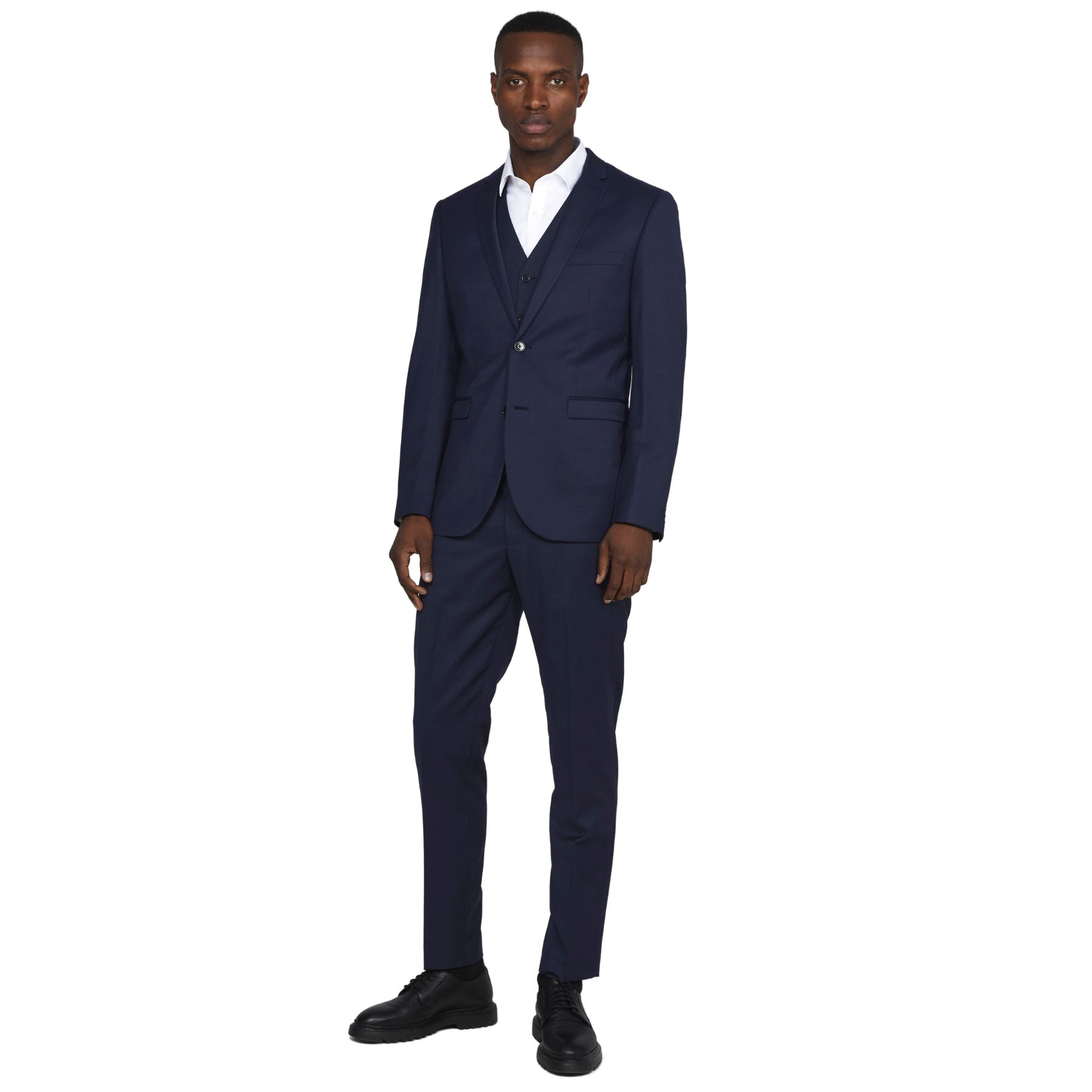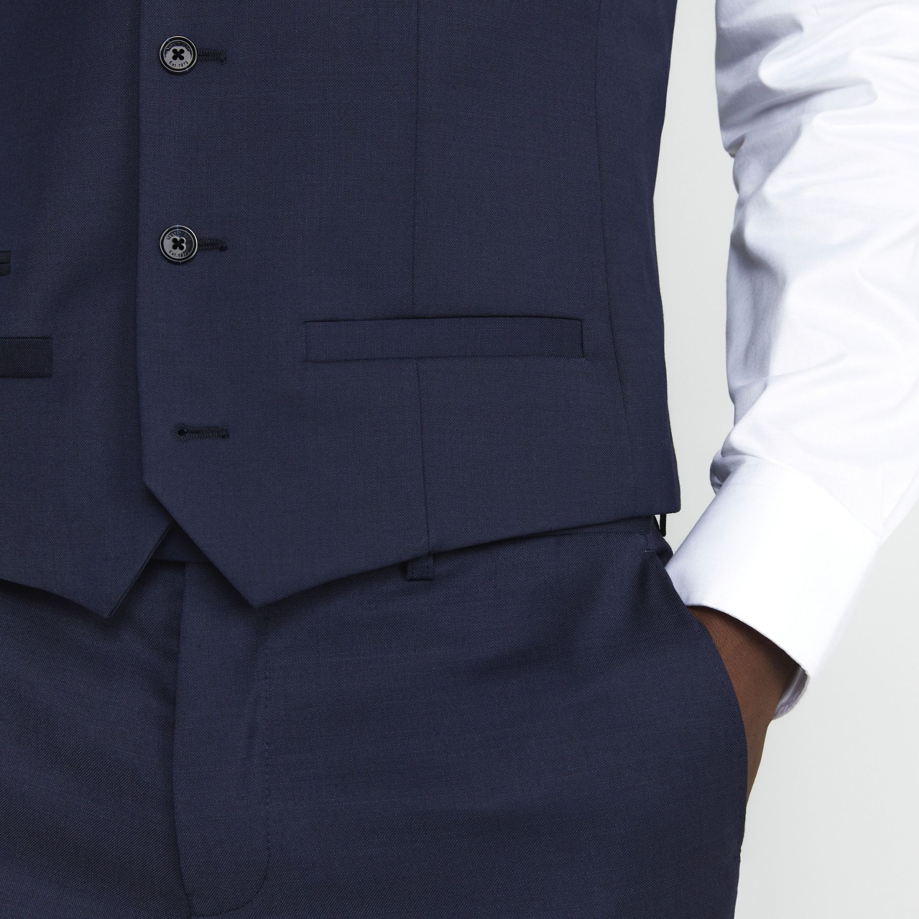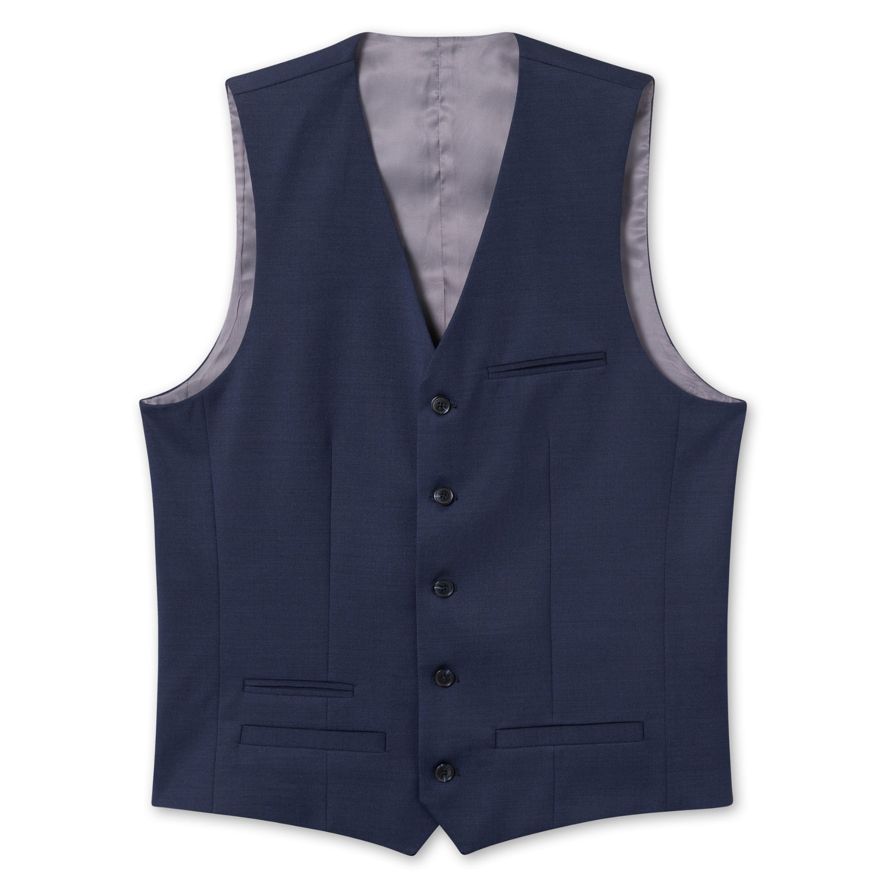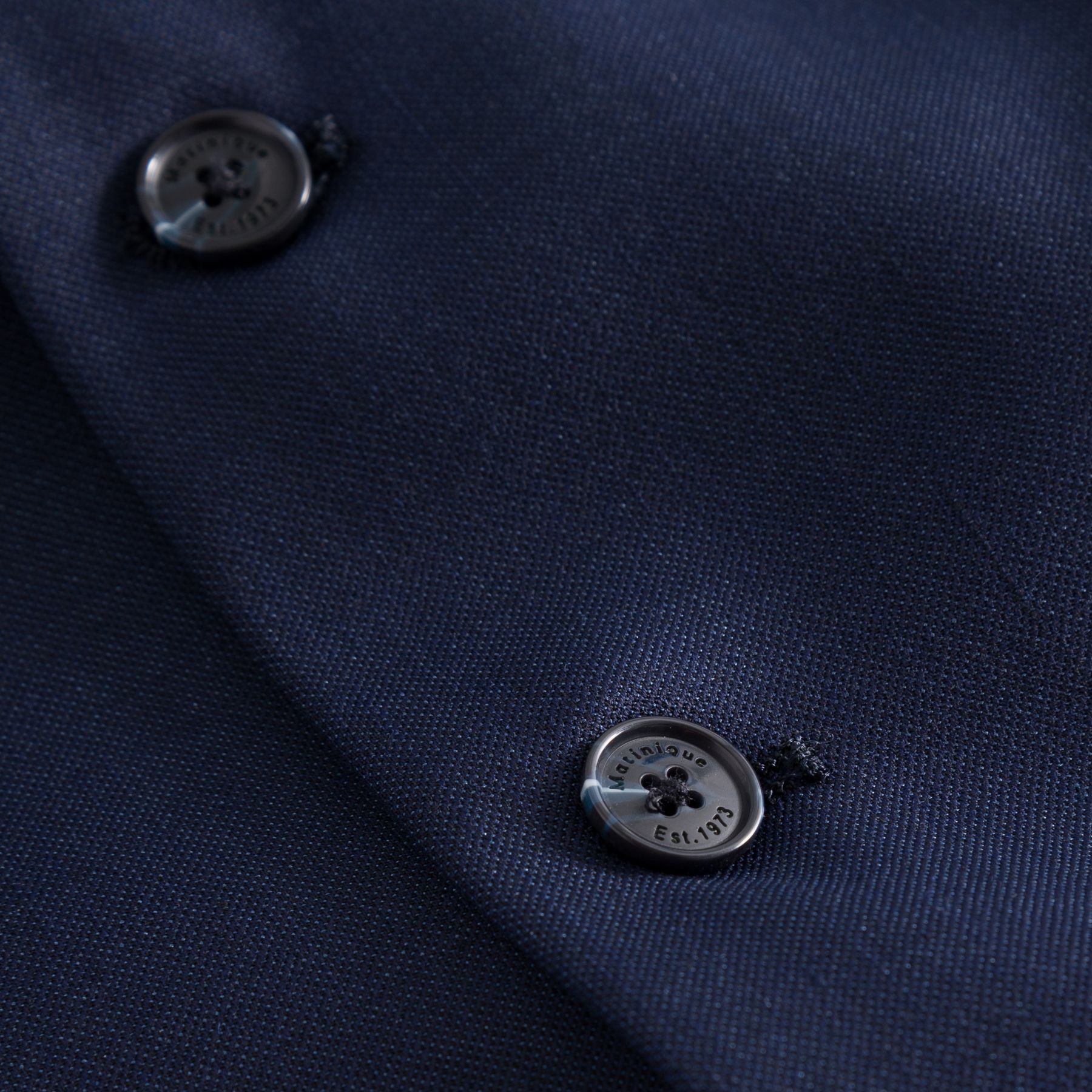 Klassisk Blå Matinique vest i en luksuriøs uld. Denne elegante vest har et detaljeret vinkel-snit på kanten, fire paspolerede lommer.